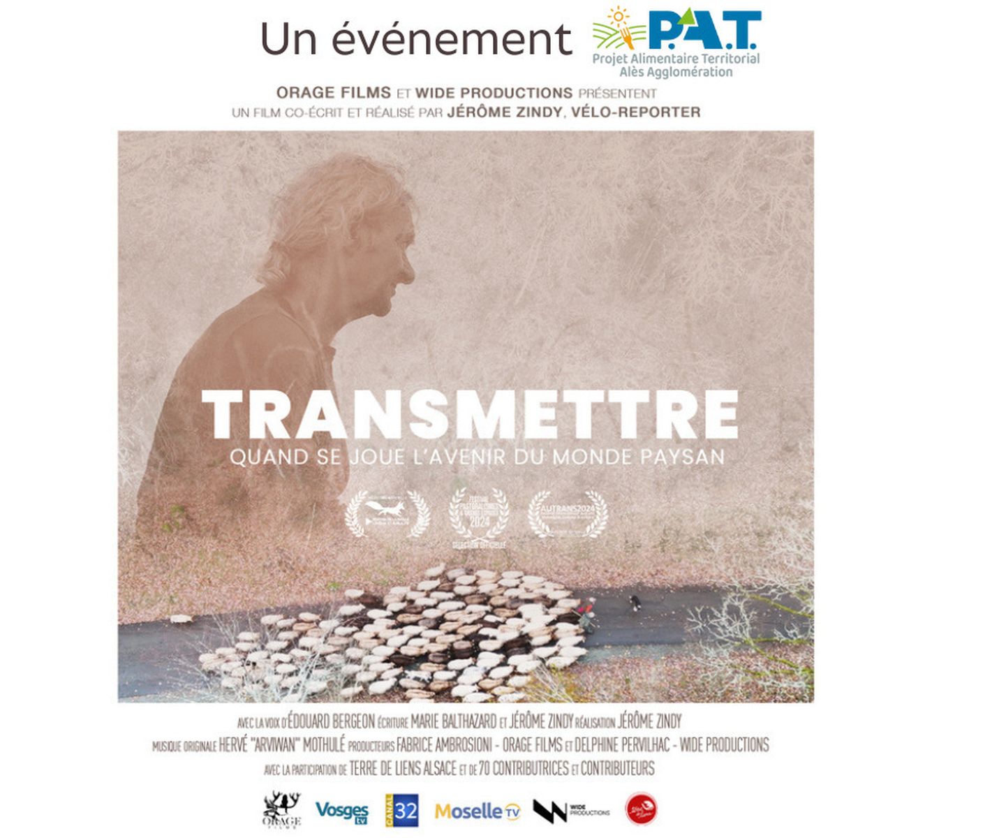 Les associations Terre de Liens Languedoc Roussillon, les Imaginaires proposent un ciné débat dans le cadre du Festival Alimenterre Le débat sera en présence de bénévoles de Terre de Liens, Inpact30 et membres du groupe de travail Transmission du PAT de l’Agglo d’Alès Ensuite un verre de l’amitié sera proposé et éventuellement suivi d’un repas partagé pour poursuivre les échanges