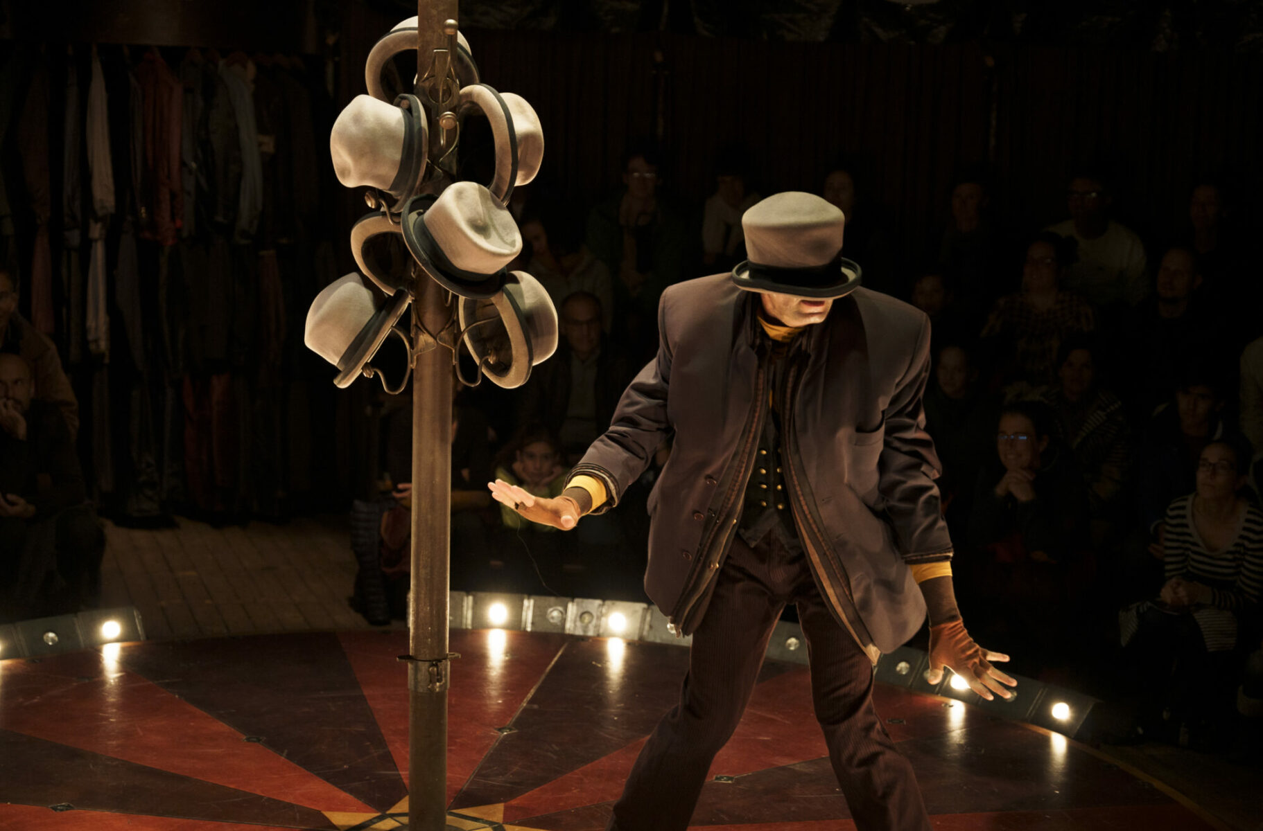 Décrochez-moi-ça désigne, en français désuet, une ancienne boutique de fripes, où tous les vêtements sont accrochés en hauteur. Les vestes suspendues flottent au-dessus de la piste, comme autant de regards posés sur les interprètes et les spectateurs. Les protagonistes décrochent les vestes et les endossent une à une, sur un tempo à la fois haletant et délicat, comme des mémoires errantes, comme des postures qu’on endosse au quotidien. Leurs gestes, leurs émotions et leurs silences sont accompagnés par un homme-orchestre — Simon Rosant ou Thomas Barrière, en alternance — sur une bande-son insolite. Bernie Bonin, quant à lui, dirige le plateau avec finesse et maestria. Une pièce authentique et touchante, qui déborde de beauté et de poésie de l’ordinaire. Dans l’écrin de leur petit chapiteau installé sur l’esplanade du Théâtre Éphémère, venez vivre avec ce beau quatuor un moment suspendu et d’une grande humanité.