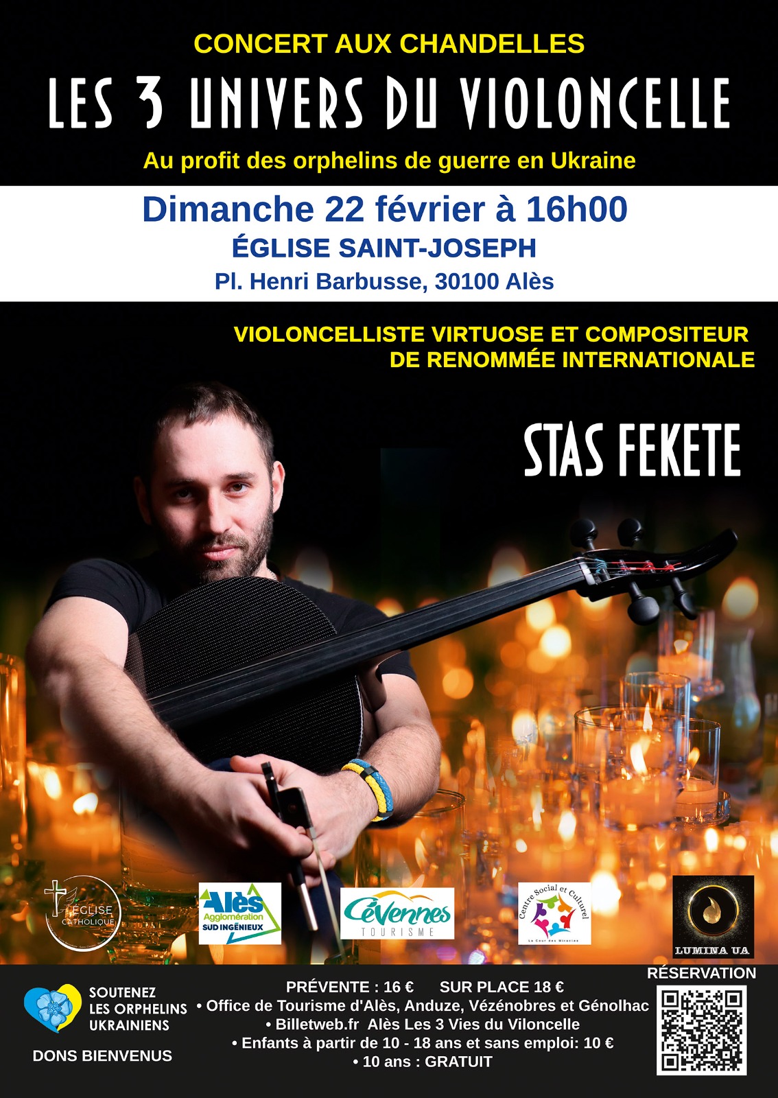 Organisé au profit des œuvres de l’association “Soutenez les orphelins ukrainiens”. Stas Fekete, violoncelliste virtuose et compositeur de renommée internationale