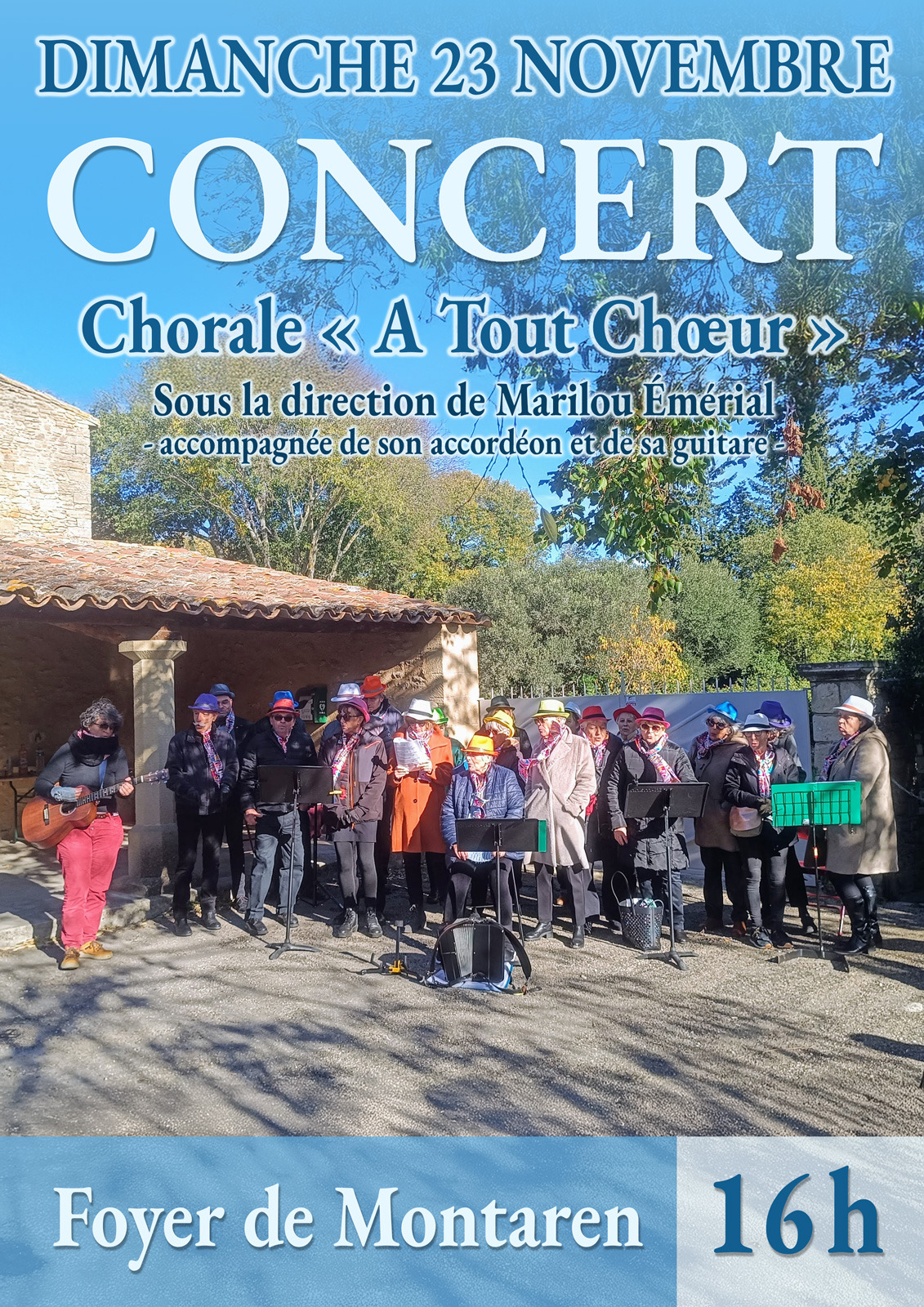 La chorale « A tout chœur » propose son répertoire sous la direction de Marilou Emerial, accompagnée de son accordéon et de sa guitare, pour une joyeuse après-midi.