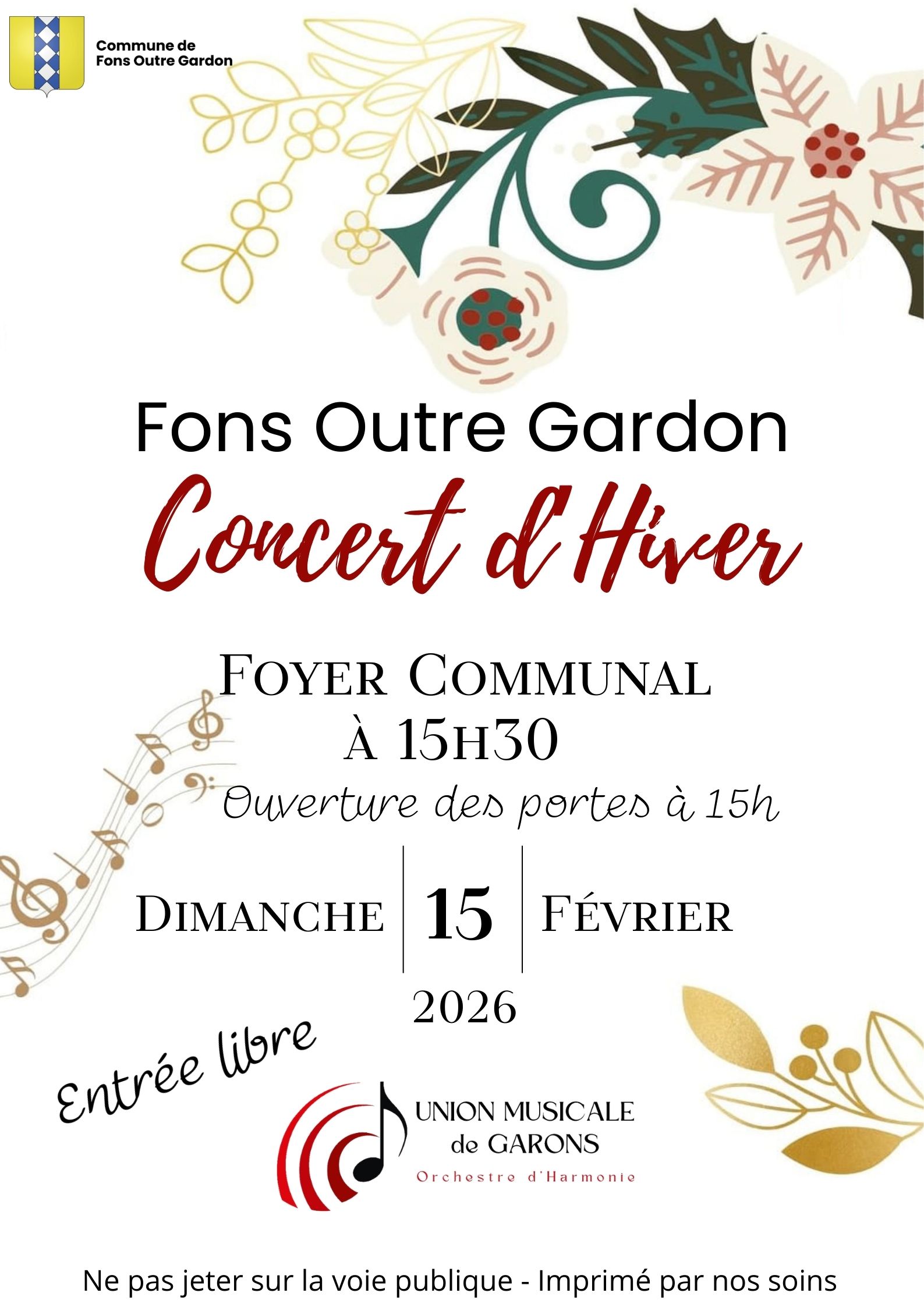 L’union musicale de Garons, vous propose une petite heure de musique au Foyer communal de Fons-Outre-Gardon.