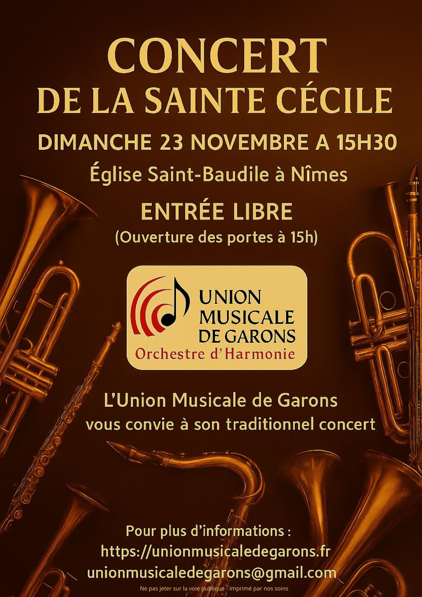 L’union musicale de Garons, orchestre d’harmonie, vous invite à célébrer la sainte patronne des musiciens. À travers un programme riche et varié, venez partager 1h de musique dans un magnifique lieu de Nîmes.