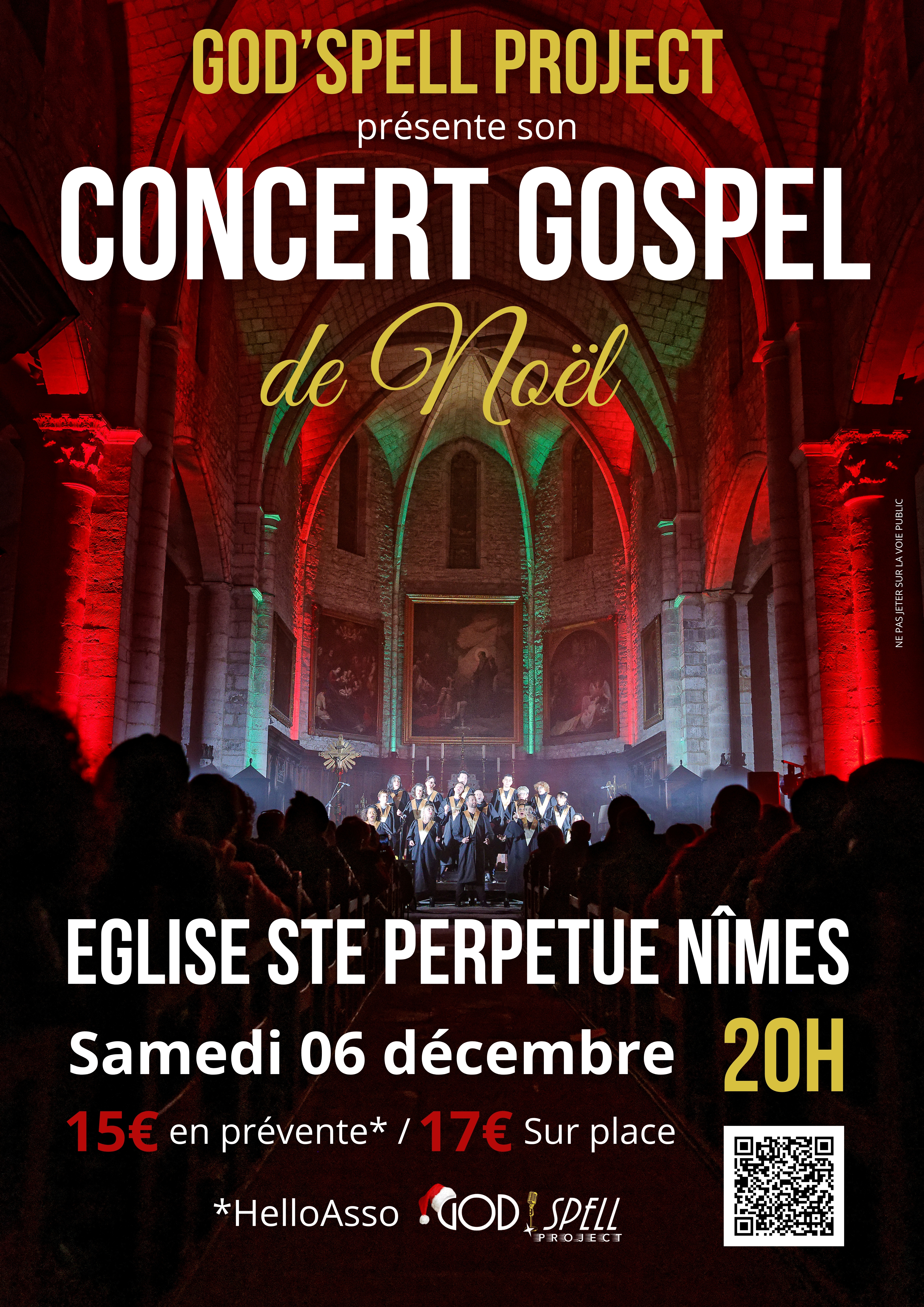 Vivez la magie du Gospel de Noël avec God’spell Project !Un concert exceptionnel à Nîmes, avec musiciens live, plus de 60 choristes et une ambiance lumineuse sublimée par nos techniciens son et lumière.