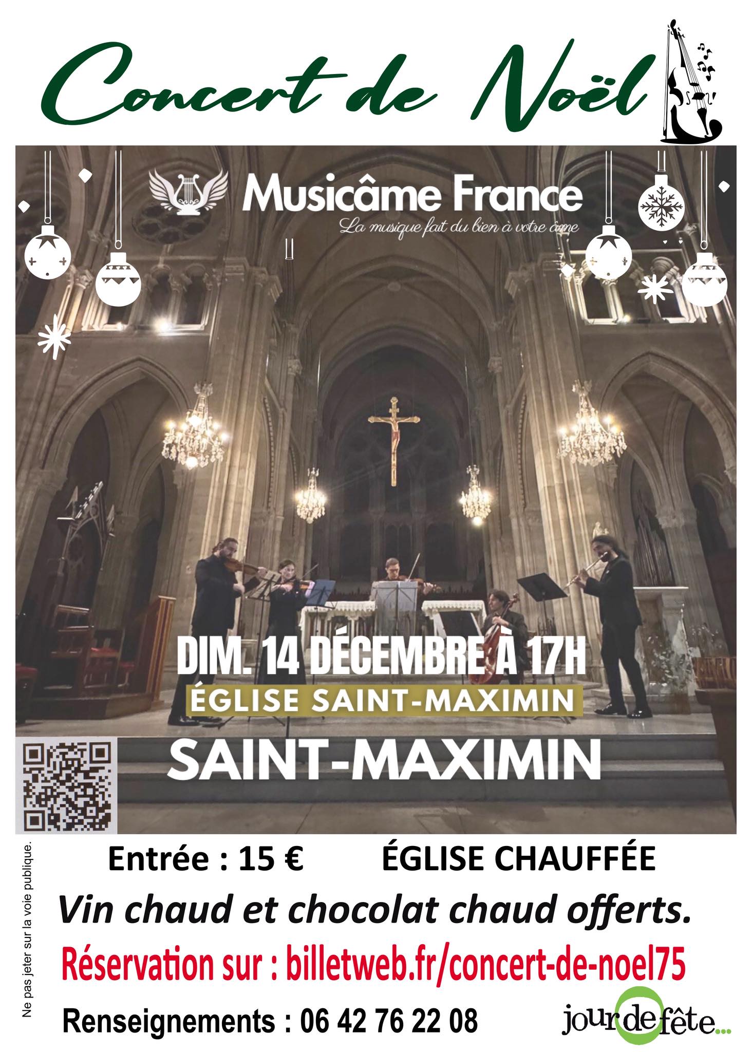 Jour de Fête organise un concert de Noël dans l’église de Saint-Maximin avec l’ensemble Musicâme-France. Un vin chaud ou un chocolat chaud sera offert à la fin du concert.