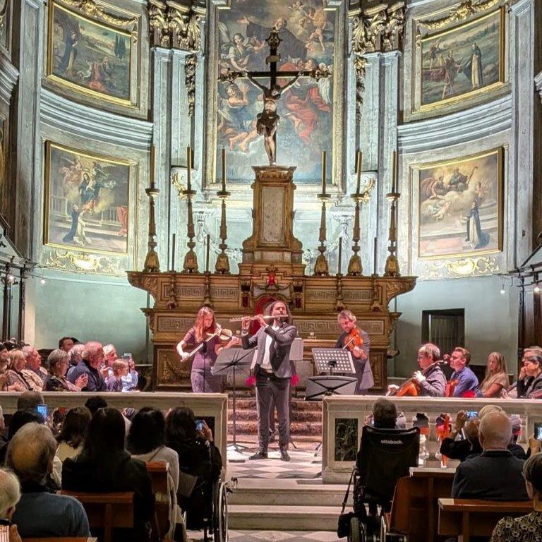 Un quatuor à cordes dialoguera avec une flûte traversière sur des morceaux de Corelli (concerto pour la nuit de Noël), Vivaldi (les 4 saisons), Caccini (Ave Maria), John Williams (Harry Potter) … Possibilité de déposer des personnes devant l’église.