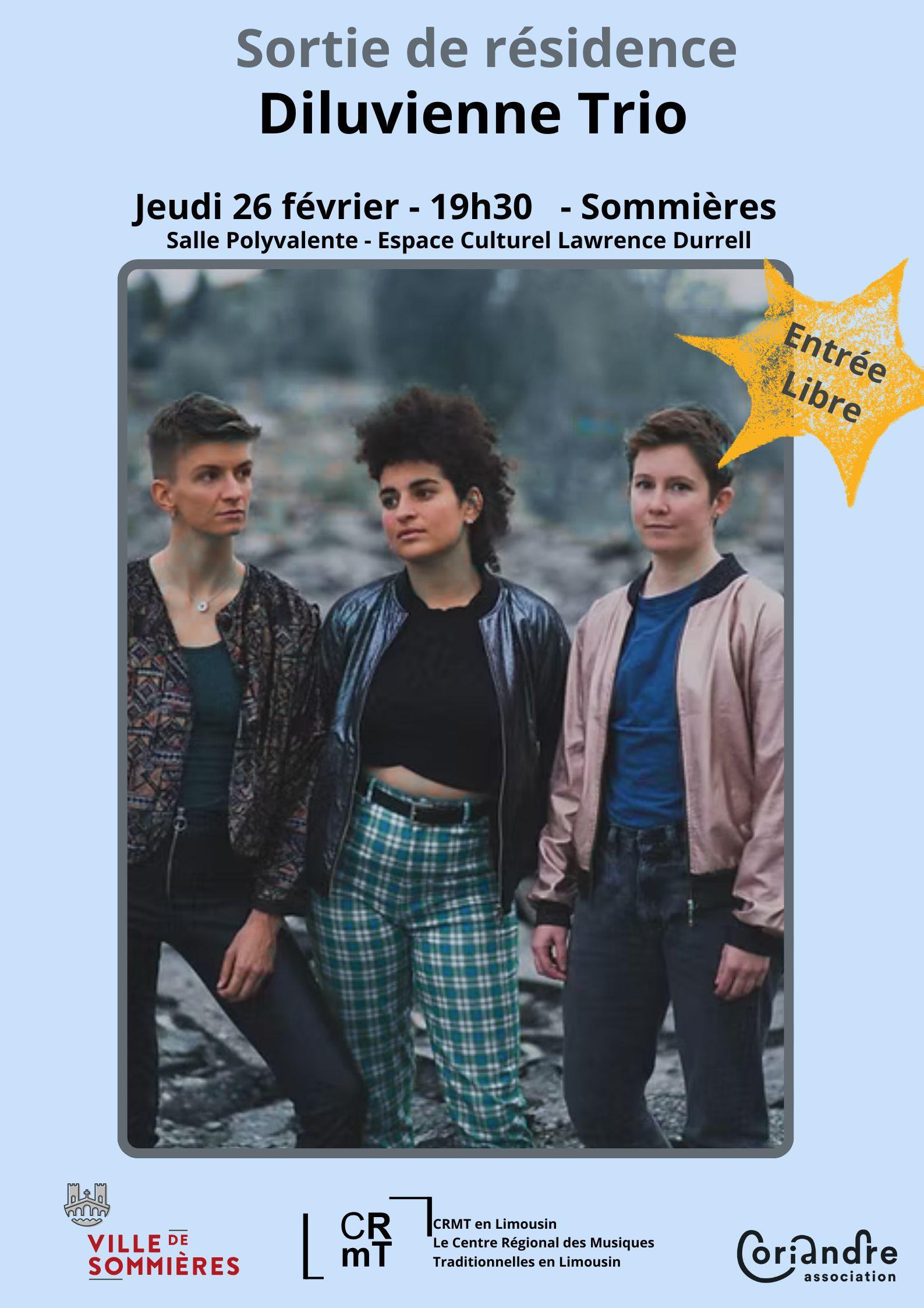 Dans le cadre du dispositif « Garage Résidence » avec le Centre Régional des musiques traditionnelles en Limousin, le groupe Diluvienne nous offre une sortie de résidence. En partenariat avec l’association Coriandre et la Ville de Sommières.