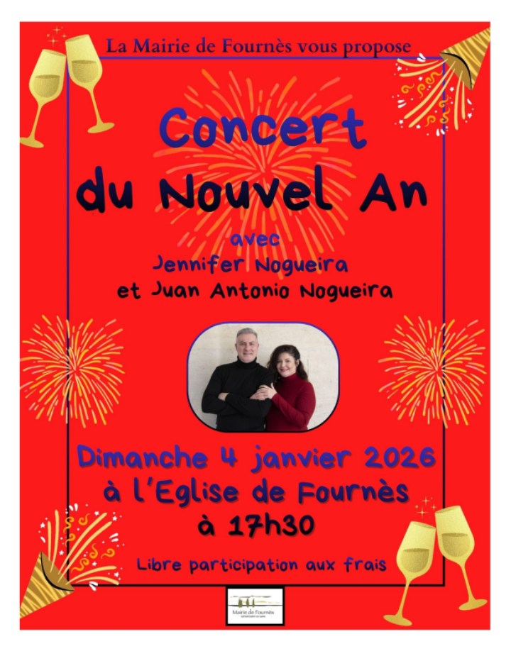 La mairie de Fournès vous propose le concert du Nouvel An à l’église, où résonneront les voix de Jennifer et Juan Antonio Nogeira.