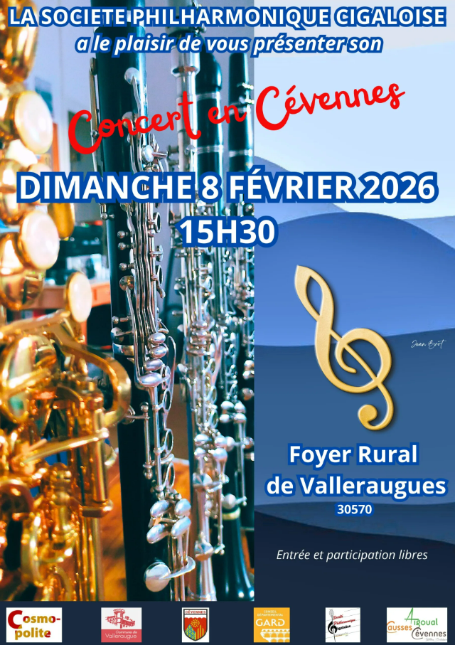 La Société Philarmonique Cigaloise à le plaisir de vous présenter son Concert en Cévennes.Au foyer Louis Barre de Valleraugue.