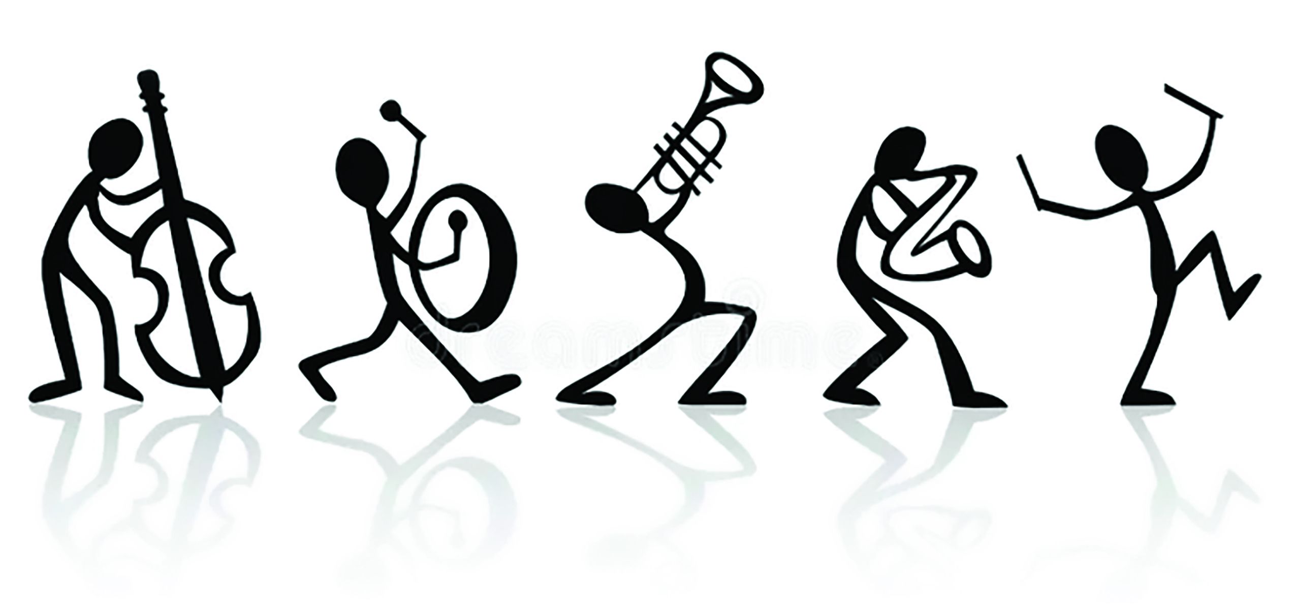 Elèves de 1er cycle des classes de Claire Gazelle – trompette, François Rouveyrol – clarinette, Christophe Castel – trombone, Jean-Marc Pongy – saxophone.