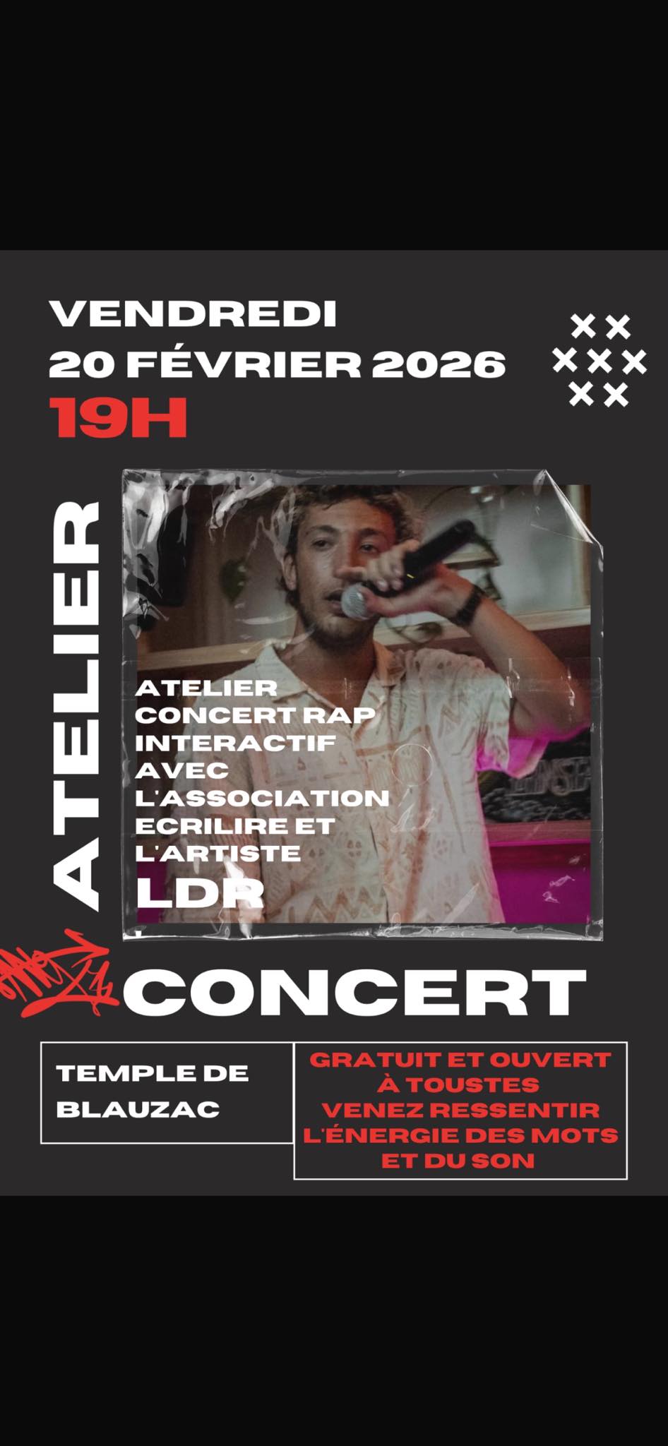 L’association Écrilire vous propose d’écouter les magnifiques textes de Léandro, nom d’artiste LDR. Le format est original puisqu’il s’agira d’un concert interactif et ouvert à tous.Quand la jeunesse s’affiche, s’exprime, soyez au rdv !