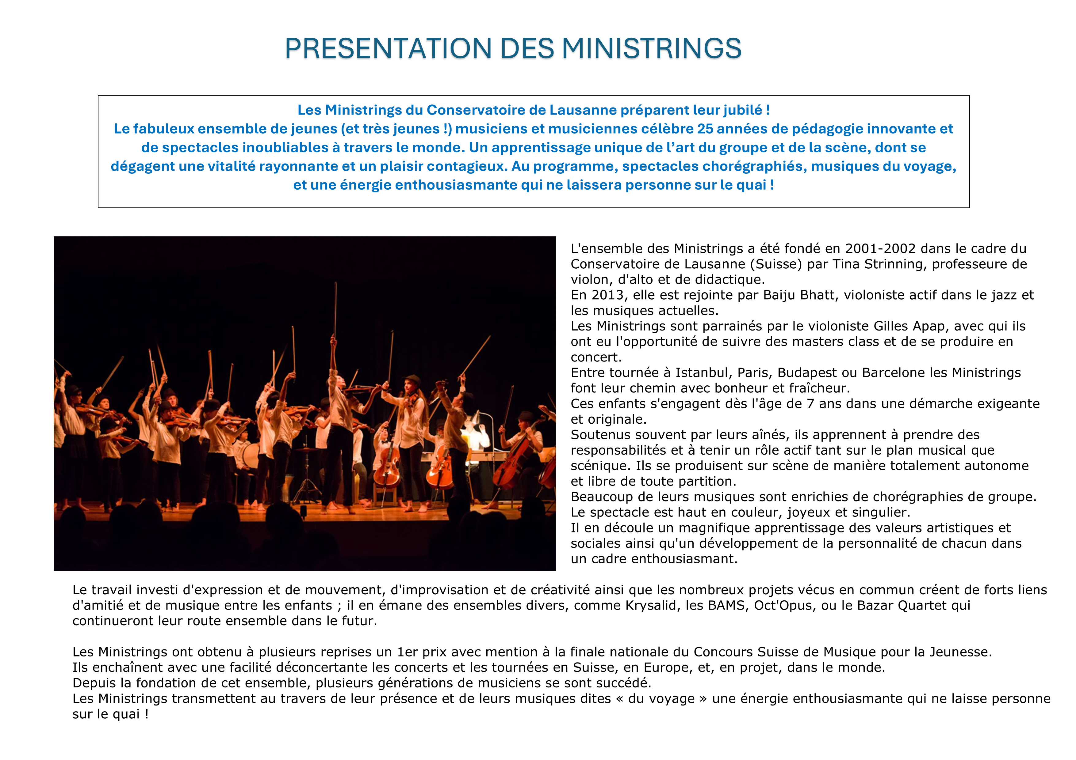 Les Ministrings du Conservatoire de Lausanne préparent leur jubilé !