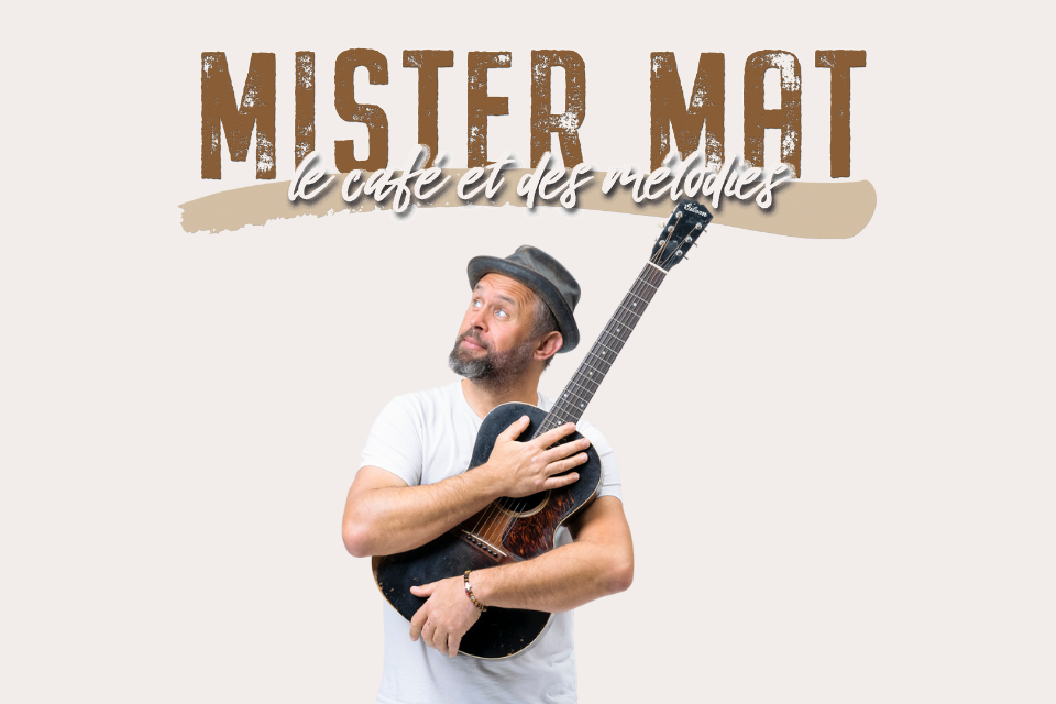 Mathieu Guillou, connu sous le nom de Mister Mat, est un auteur-compositeur-interprète et guitariste français. Doté d’une voix rauque et chaleureuse, il interprète ses propres compositions en s’accompagnant à la guitare acoustique. Il collabore avec de grands noms de la chanson française comme Gaëtan Roussel, Mickey 3D ou encore Vianney