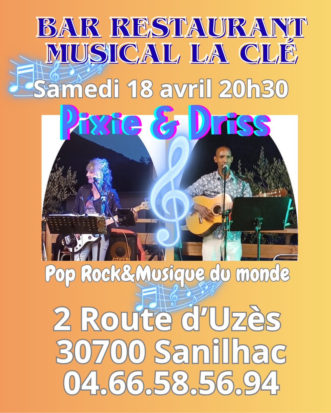 Le duo Pixie et Driss vous présente son répertoire Pop Rock et musique du monde, un moment agréable autour d’un dîner concert, bar à cocktail ouvert. Réservation conseillée. Concert gratuit ouvert à tous.