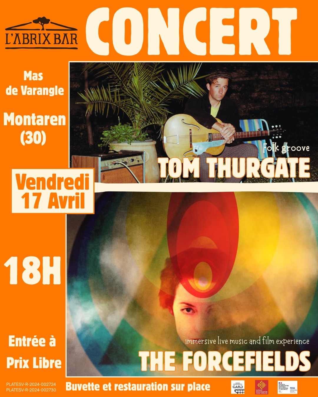 L’Abrix Bar vous invite à une soirée musicale immersive et conviviale au Mas de Varangle ! L’univers folk groove de Tom Thurgate transporte avec douceur et intensité. The Forcefileds combine images, sons et performance.