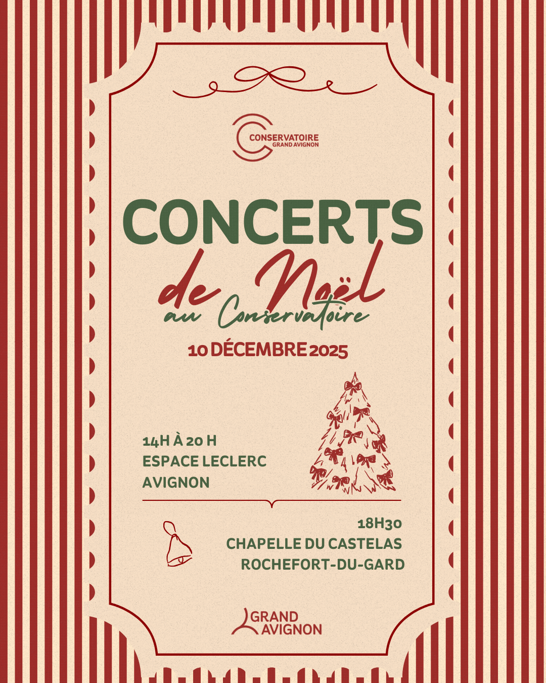 Concerts de Noël du conservatoire pour petits et grands. Musiques festives interprétées par les élèves des différentes classes.Série de concerts de Noël avec les élèves et professeurs du conservatoire.