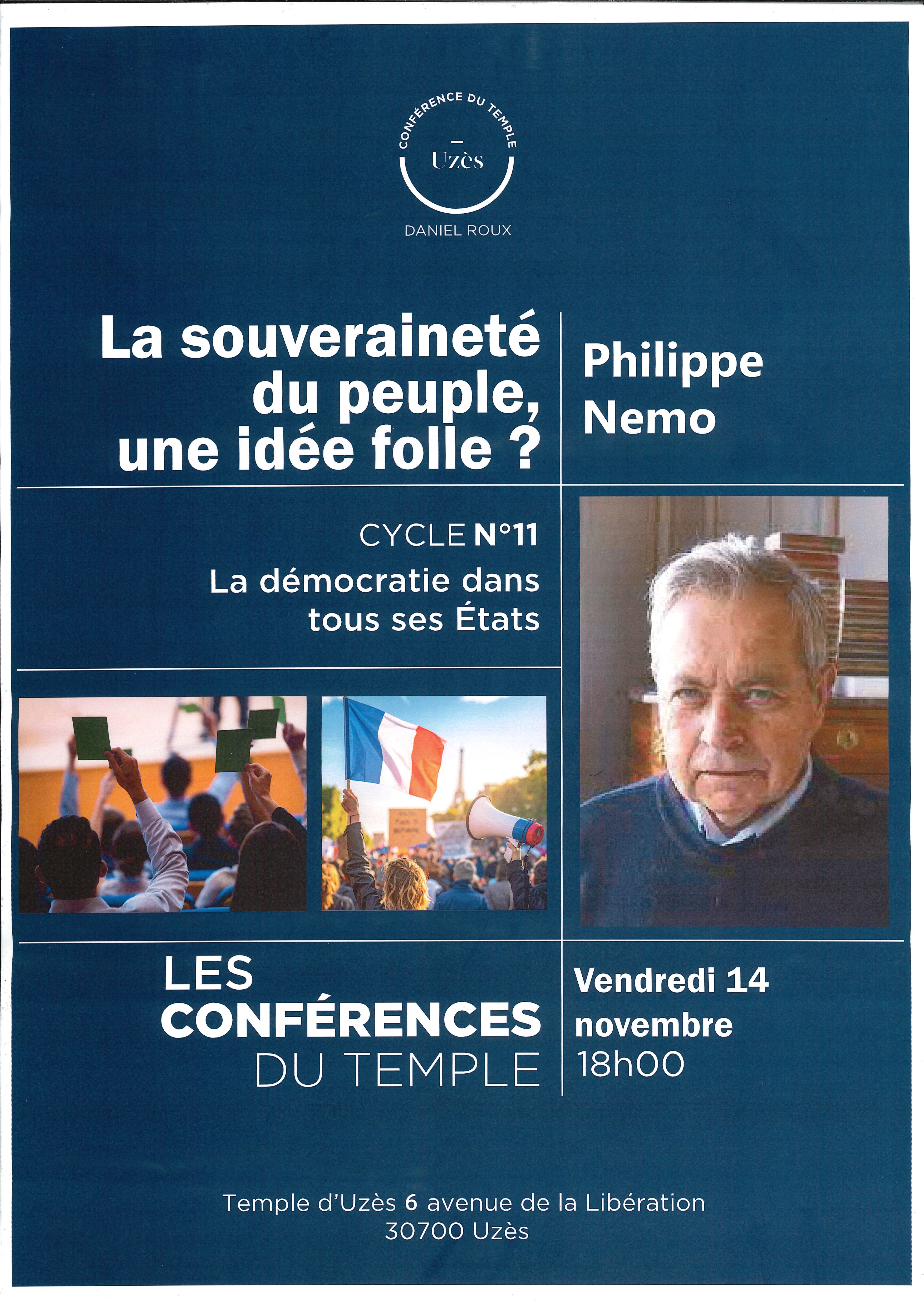 – 14 novembre 2025 avec Philippe Nemo : « La démocratie, ses fondements des origines à nos jours ».