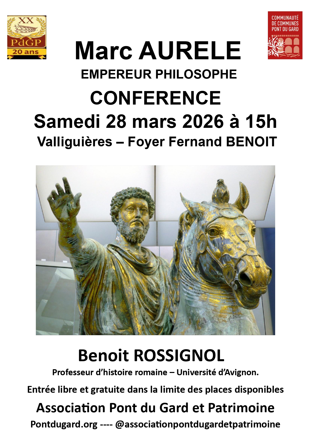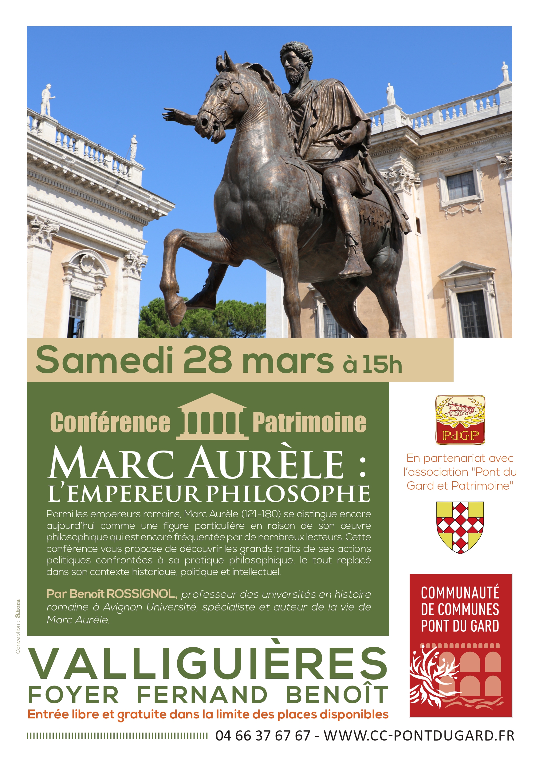 Benoît ROSSIGNOL, professeur des universités en histoire romaine à Avignon Université, spécialiste et auteur de la vie de Marc Aurèle, présentera dans sa conférence les grands traits de ses actions politiques en les confrontant à sa pratique philosophique.