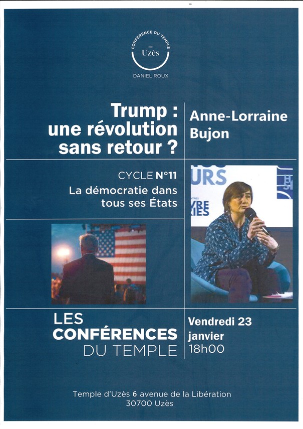 Anne-Lorraine Bujon anime cette conférence qui s’inscrit dans le cycle La démocratie dans tous ses états. Put-on encore parler de démocratie aux USA ?