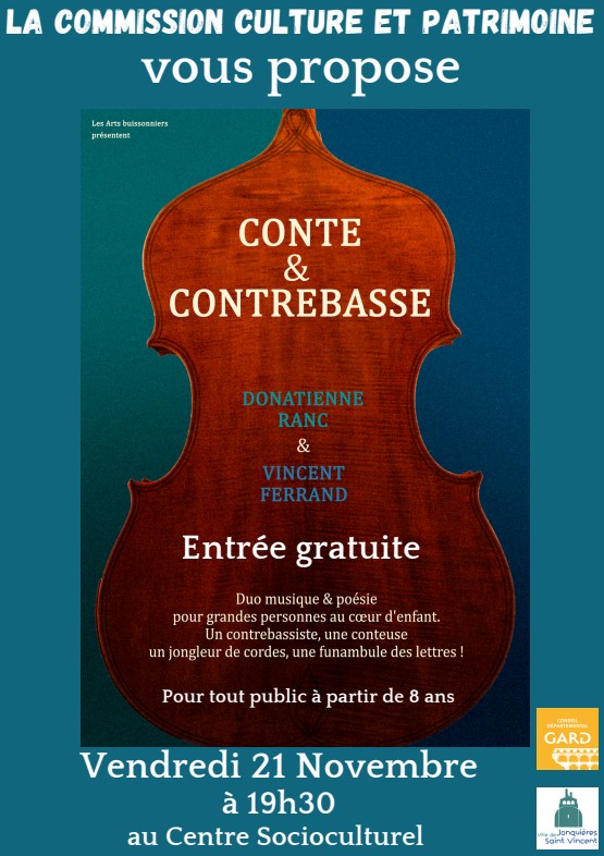 Dans le cadre de « Contes en balade » organisé par la Direction du Livre et de la Lecture, la commune de Jonquières-Saint-Vincent accueillera « CONTE & CONTREBASSE »