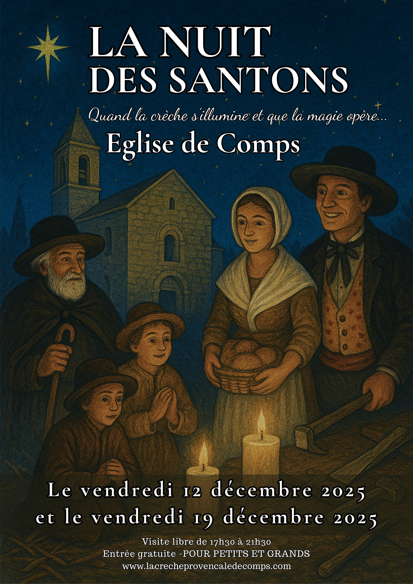 Dès la fin Novembre, c’est dans l’église de Comps que le mystère de Noël prend forme. La grande crèche de Noël de Romain Rodriguez se mêle à la tradition provençale, où l’histoire d’une naissance associée à la féerie de Noël va vous émerveiller.