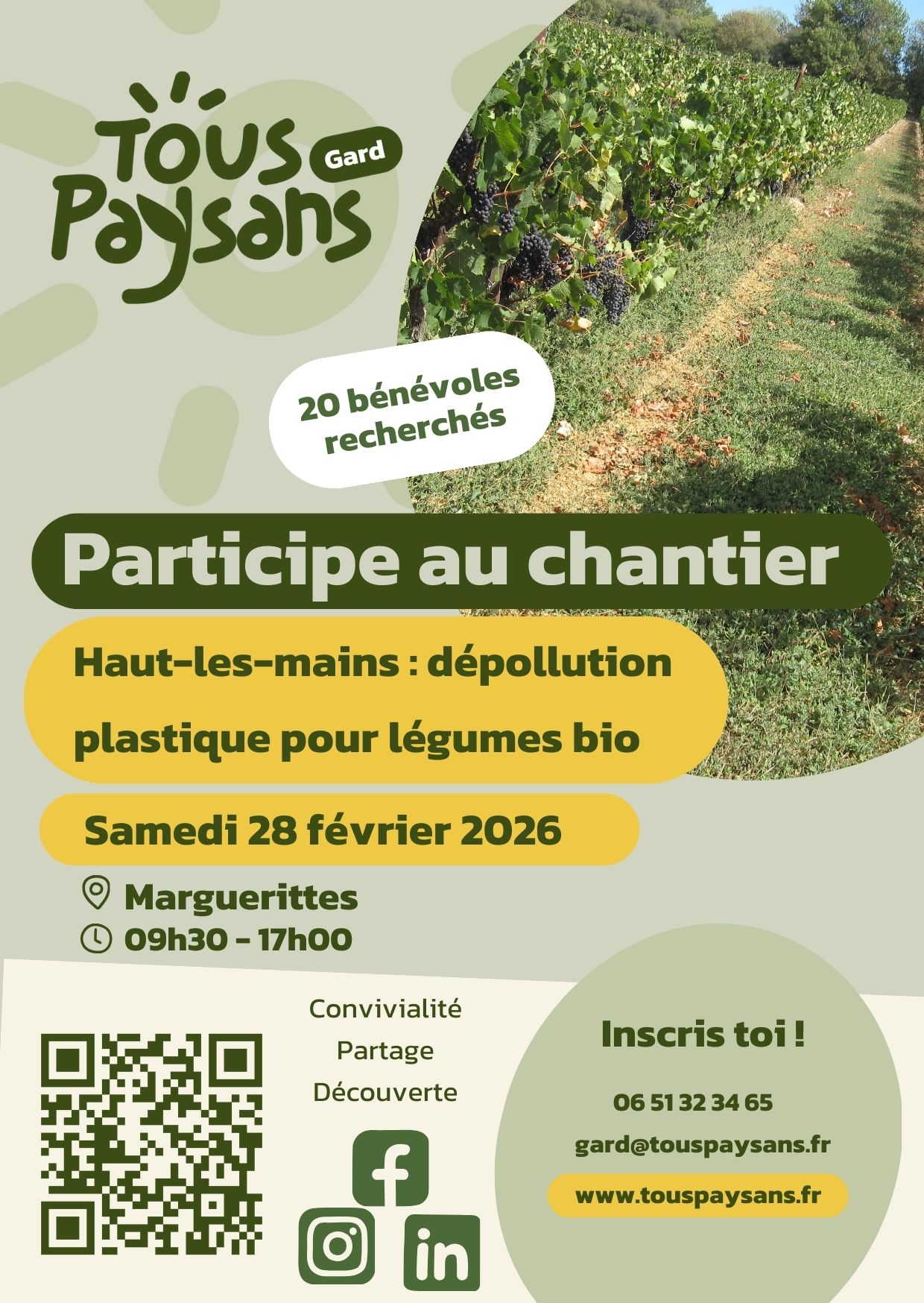 Nous proposons un chantier collectif pour aider Anthony et Xavier, maraîchers à Marguerittes.