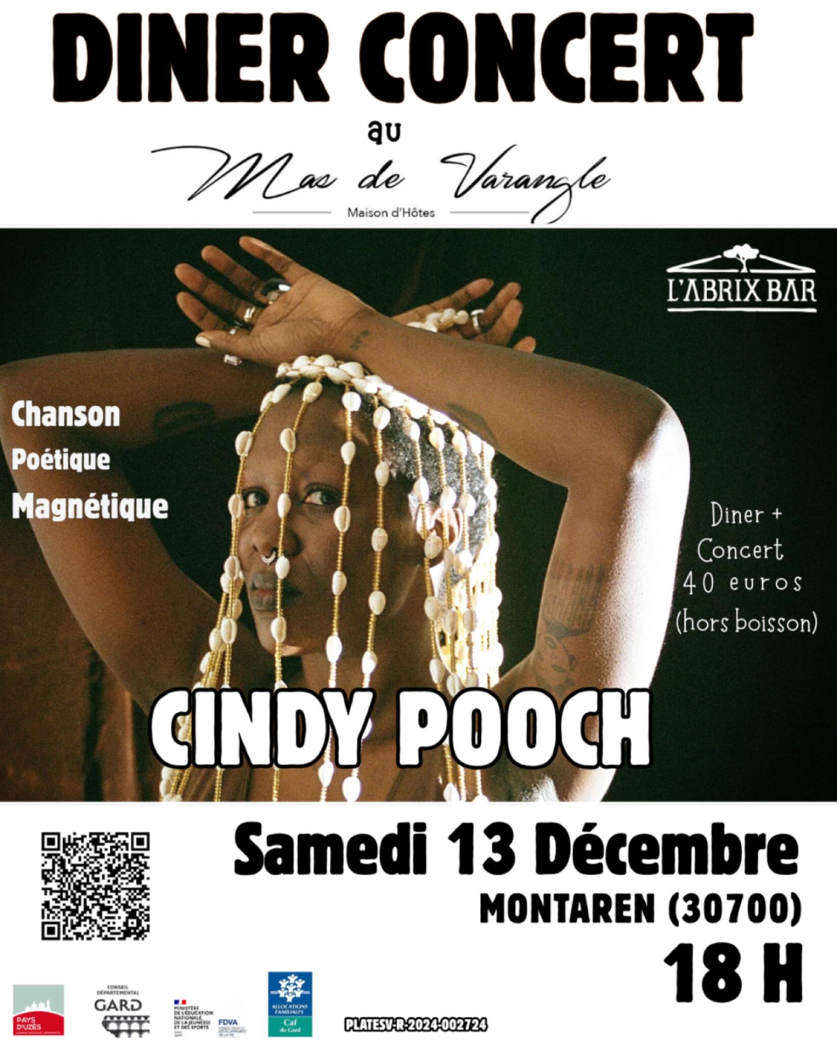Le Mas de Varangle accueille à nouveau avec grand plaisir l’Abrix bar et la chanteuse et poétesse, Cindy Pooch, en solo ! La soirée s’annonce exceptionnelle : une ambiance intimiste, un moment suspendu, et un concert d’une intensité poétique rare.