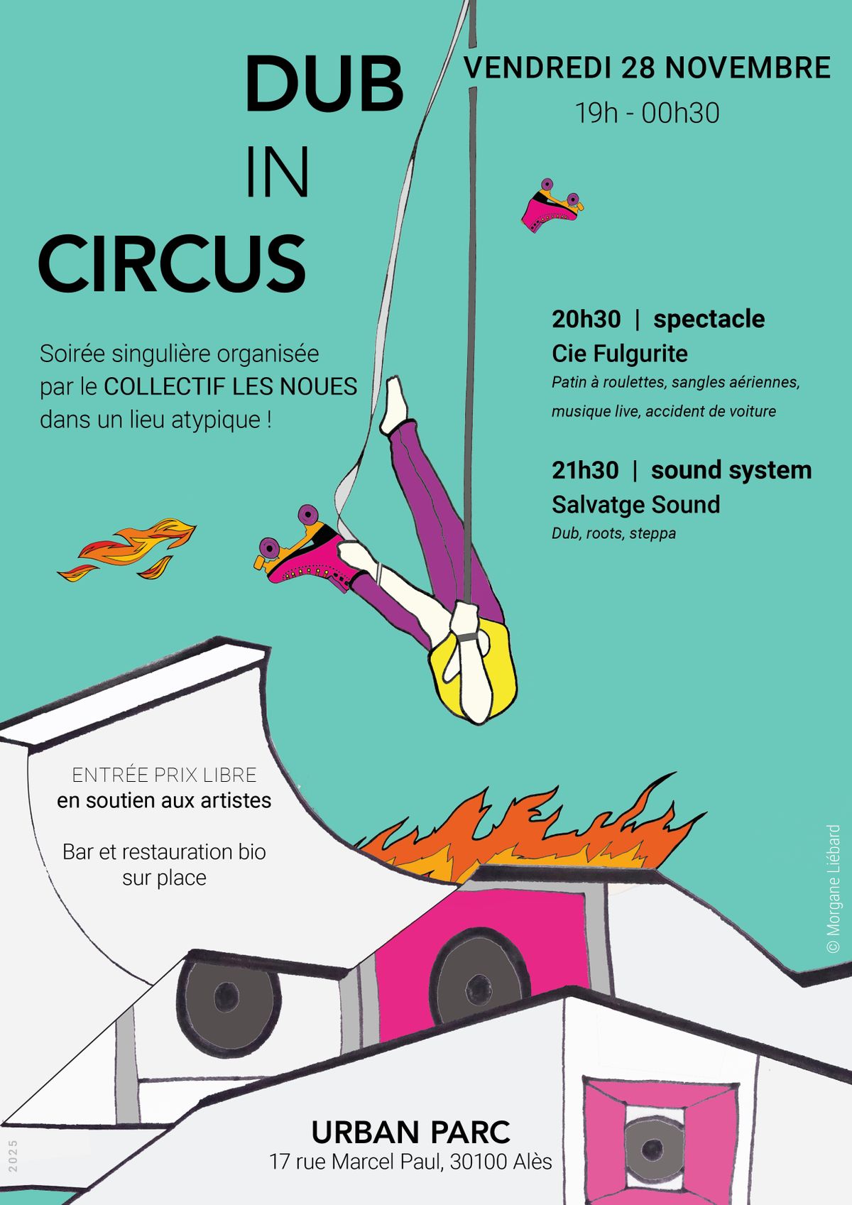 Nous vous proposons de se retrouver pour la session automnale de DUB IN CIRCUS à l’Urban Parc ! Pour les néophytes, DUB IN CIRCUS c’est : un spectacle de cirque pour les yeux, un sound system Dub pour les oreilles et on mélange le tout dans un lieu atypique pour vous offrir une soirée aux multiples facettes !