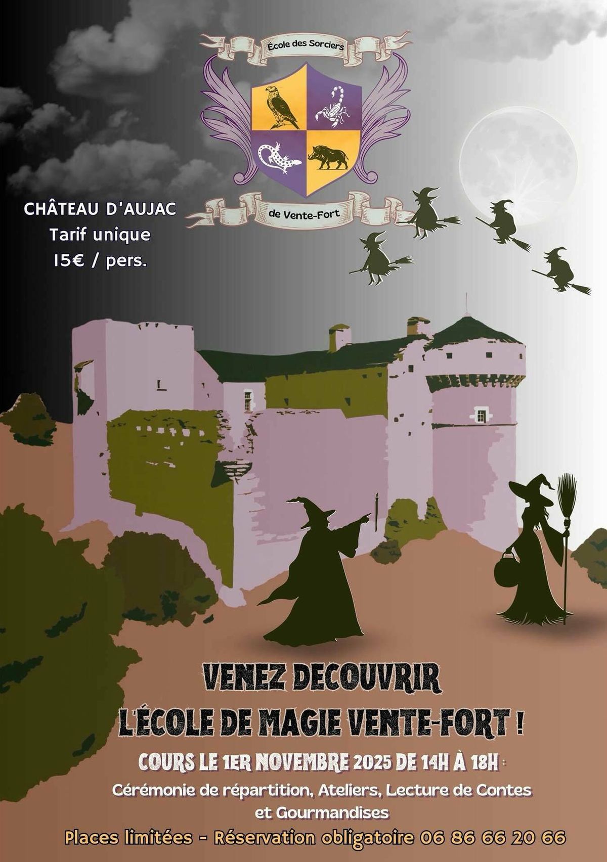 Le Château d’Aujac accueille petits et grands à l’École de Sorcellerie de Vente-Fort pour une cérémonie de répartition, ateliers, lecture de contes et gourmandises !