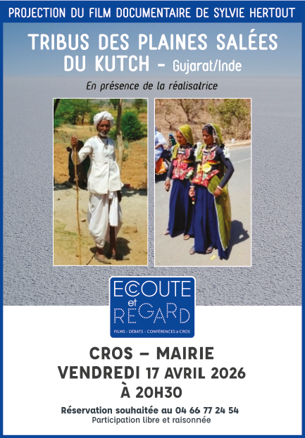 Venez décourvrir le film documentaire » Tribus des plaines salées du Kutch » à la Mairie de Cros le vendredi 17 Avril à 20H30 présenté par « Ecoute et Regard ».