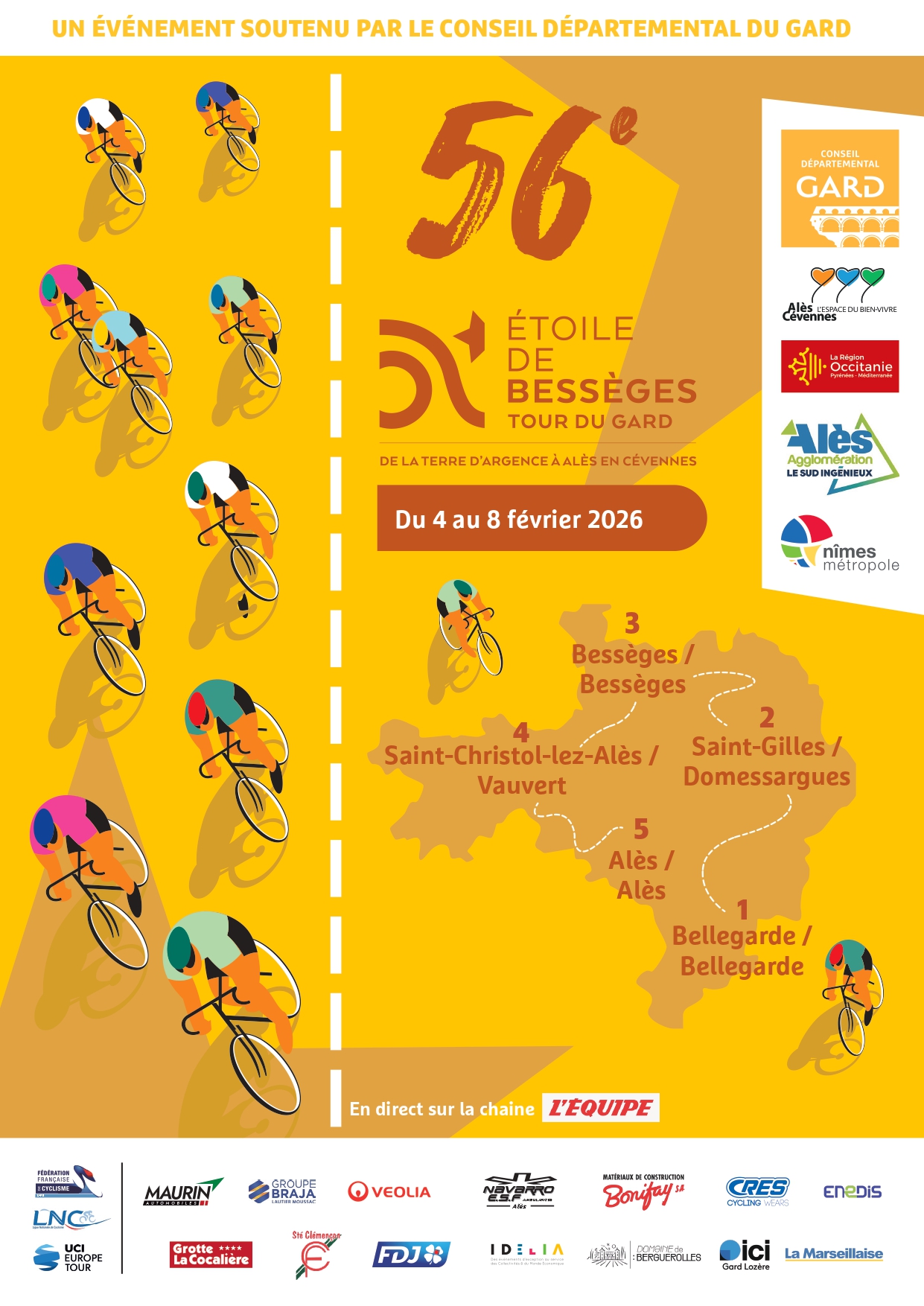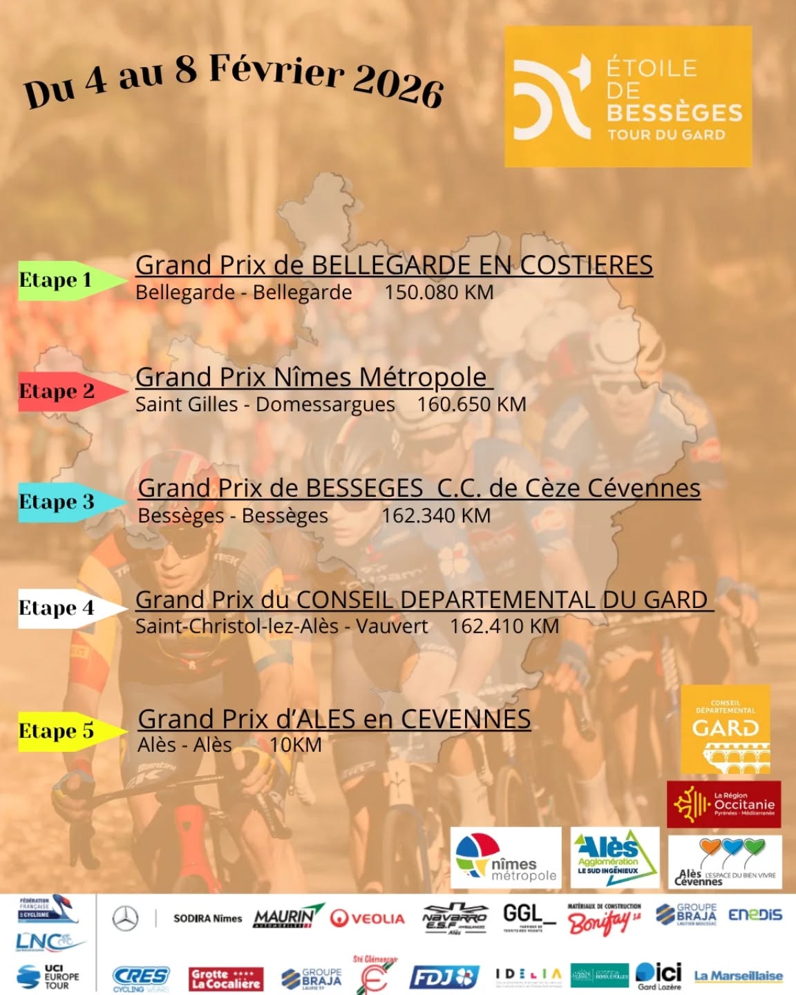 L’Étoile de Bessèges revient et traversera trois communes de la communauté de commune Pays d’Uzès : Bourdic, Garrigues Ste-Eulalie et Moussac. La course effectuera deux passages dans ces communes. Distance totale : 160,60 km.