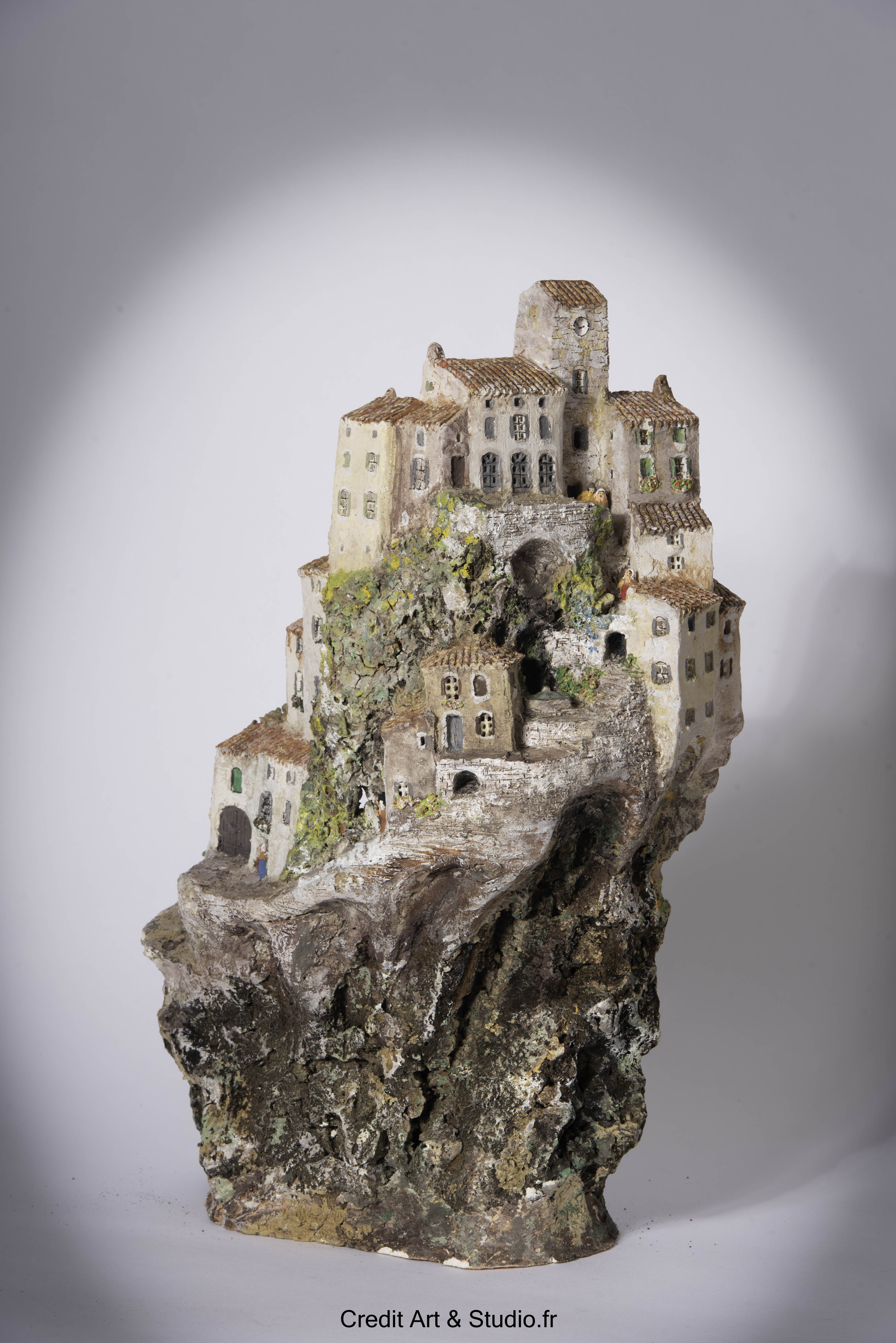 Florence Begni. Réalisations en terre cuite. Sculptures de villages et décors miniatures. Santons et crèches provençales. Patrimoine architectural miniature.