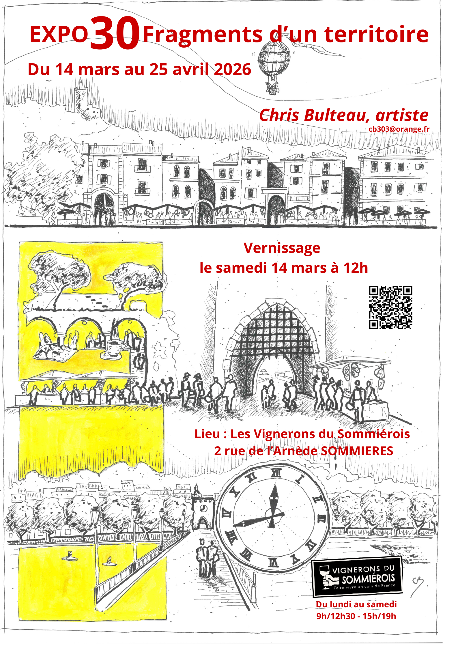 Exposition des oeuvres de Chris Bulteau artiste, encre, aquarelles, acrylique, collages… sur le patrimoine gardois.