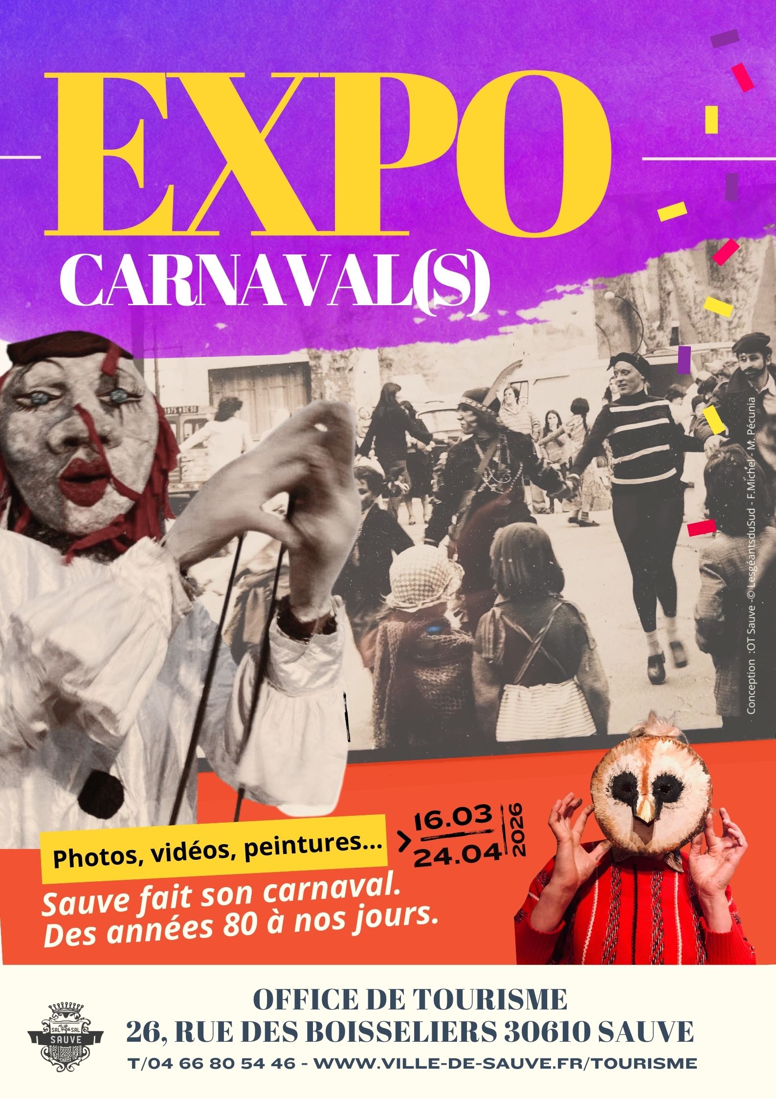 Sauve fait son carnaval. Des années 80 à nos jours. Photos, vidéos, peintures… Une exposition à voir à l’Office de Tourisme. Du 16 mars au 24 avril 2026.