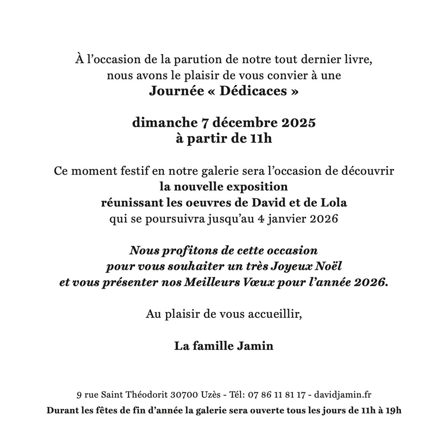 À l’occasion de la parution de notre tout dernier livre, nous avons le plaisir de vous convier à une journée « Dédicaces », le dimanche 7 décembre 2025, à partir de 11h.