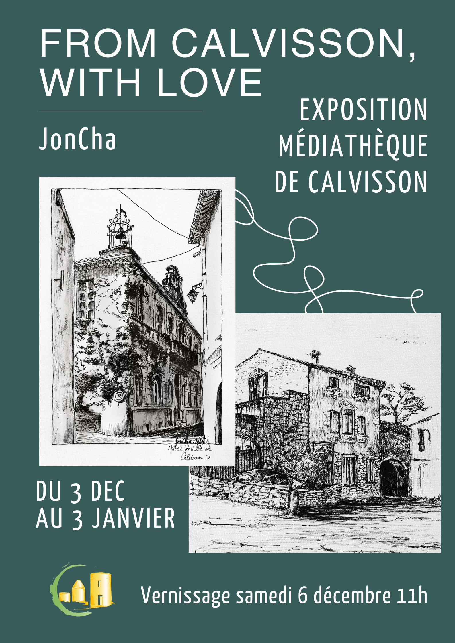 Ne manquez pas l’exposition de JonCha, artiste calvissonnais, qui nous dévoile une série de dessins empreints de finesse et de poésie. À travers son regard, notre ville se révèle sous un jour nouveau : une invitation à la (re)découvrir autrement, avec les yeux de l’artiste. Rendez-vous au Vernissage le samedi 6 décembre à 11h.