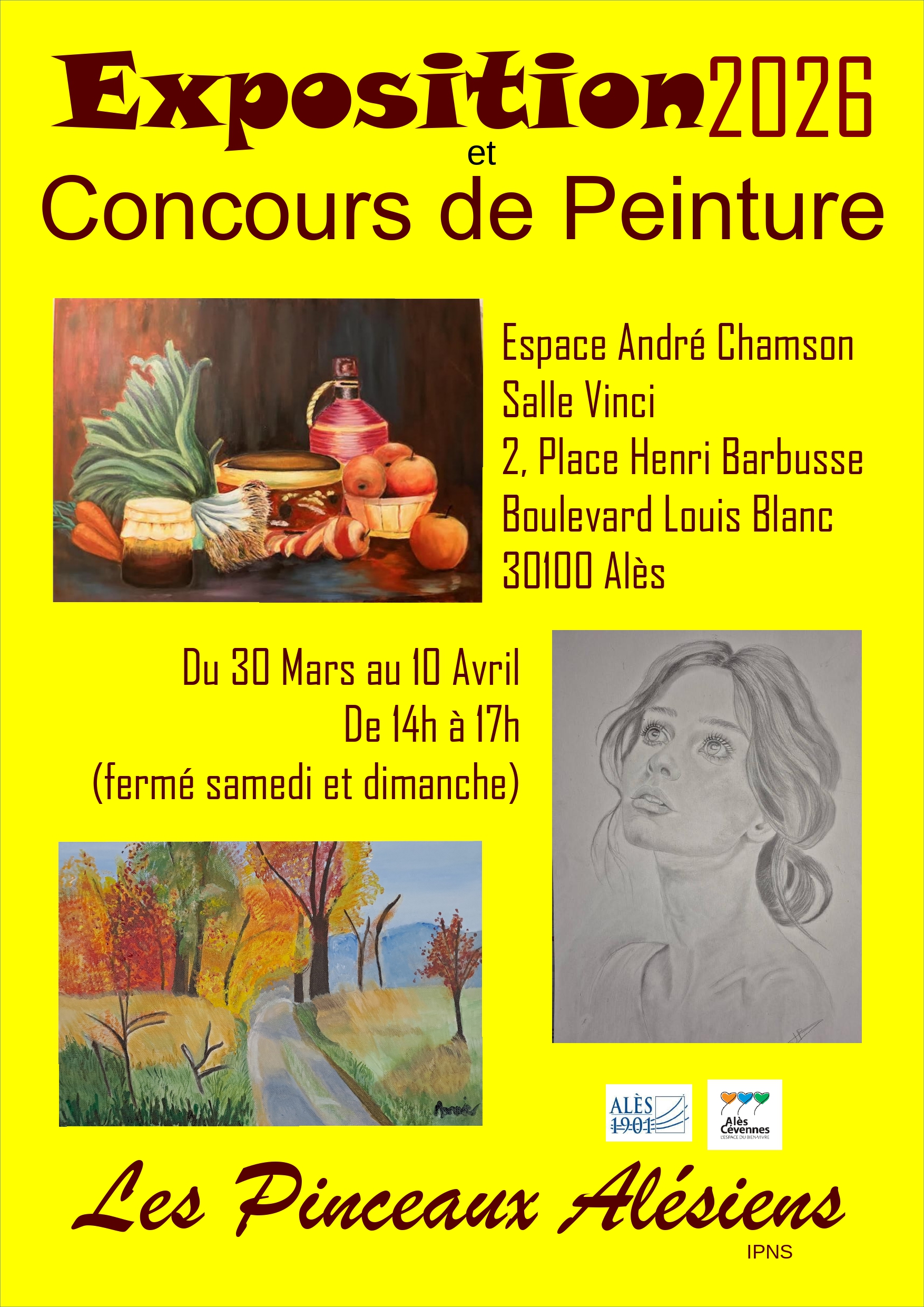 Les Pinceaux Alésiens présentent les œuvres réalisées durant l’année afin de participer à un concours qui récompensera trois artistes.Vernissage mardi 31 mars à 18h30.
