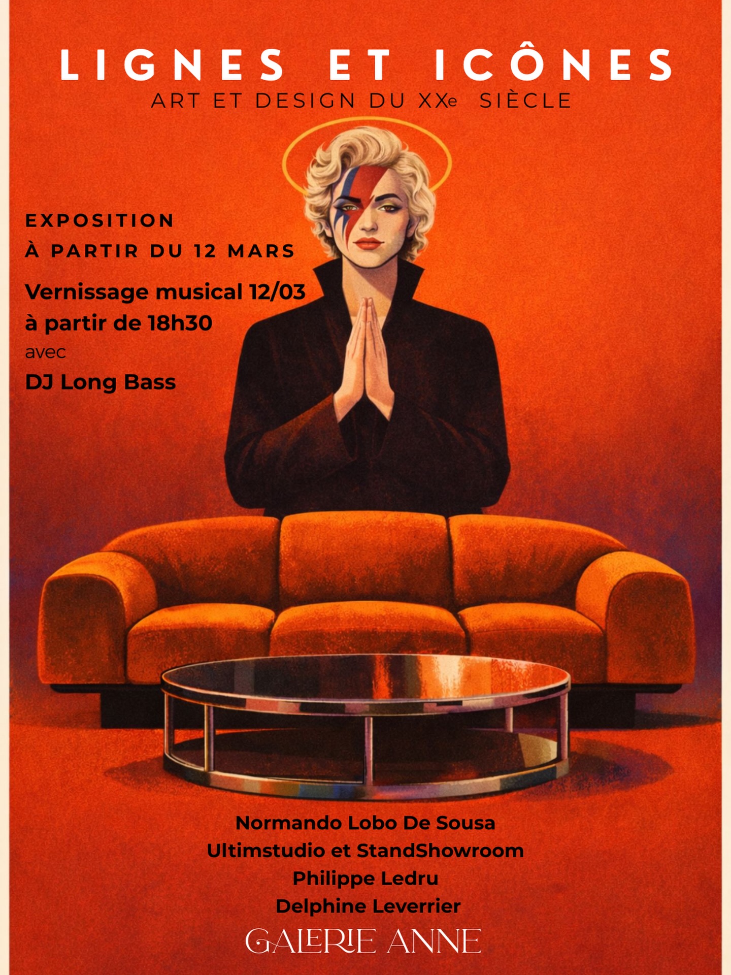« Lignes et icônes », une exposition immersive mêlant art contemporain et design du XXe siècle avec Philippe Ledru, Normando Lobo De Sousa et Delphine Leverrier. Vernissage musical avec DJ Long Bass le 12 mars.
