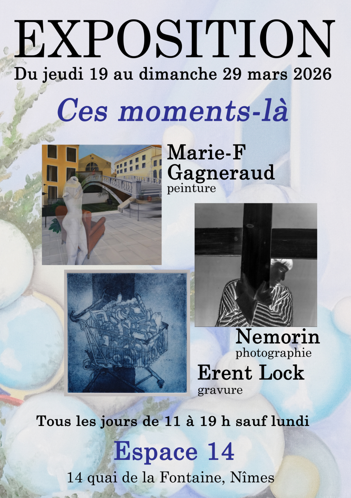 Marie-Françoise Gagneraud, Nemorin et Erent Lock montrent, avec des techniques différentes, des peintures, des photographies et des gravures. Ces instants fugitifs mais reconnaissables, témoignages de notre humanité.