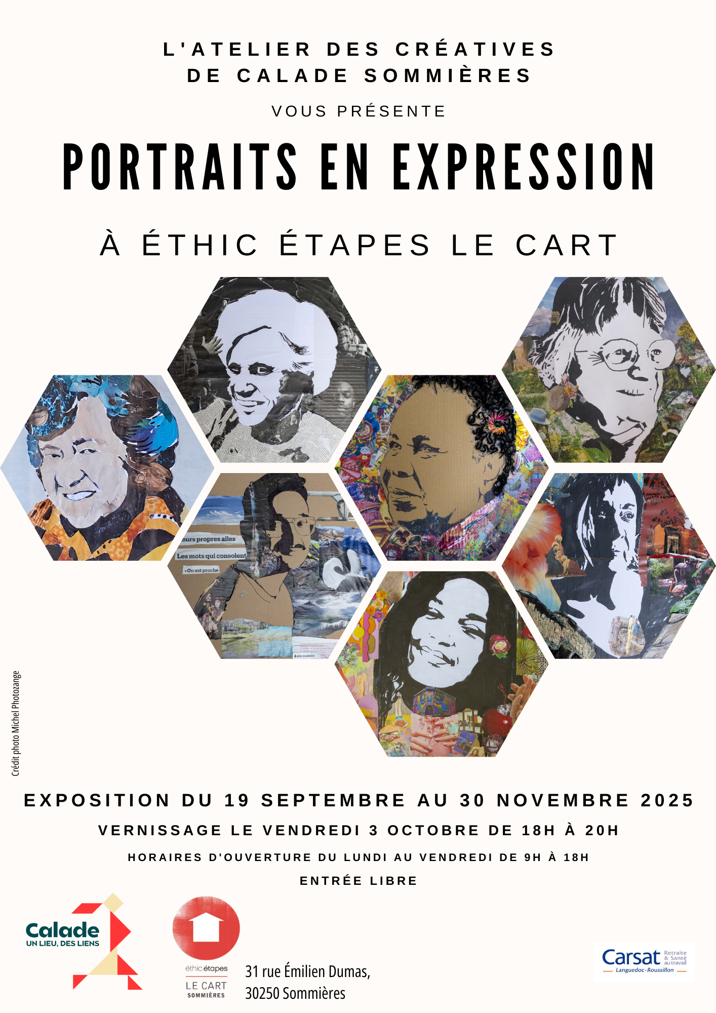 L’Atelier des Créatives de Calade Sommières présente « Portraits en Expression » au Cart.