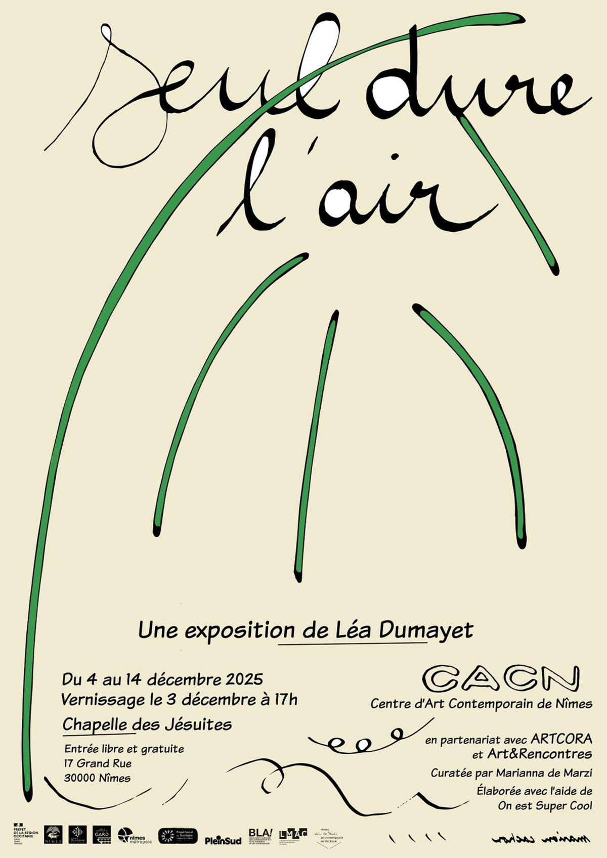 – Le CACN, Centre d’art contemporain de Nîmes soutient la création et diffuse l’art contemporain sur la scène locale grâce à des expositions, des conférences, des performances, des ateliers pédagogiques. Le CACN est impliqué pour l’organisation de l’exposition, les médiations et la communication.