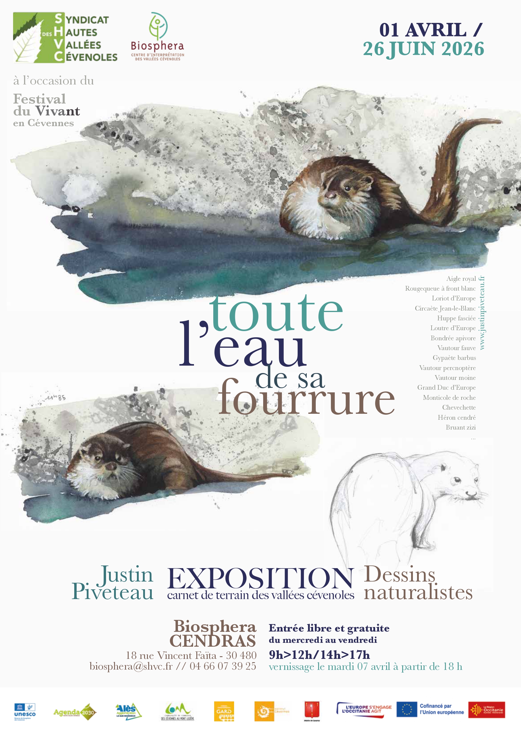Justin Piveteau expose ses planches de dessin animalier sur les murs de Biosphéra, issus de carnets de terrain des vallées cévenoles.