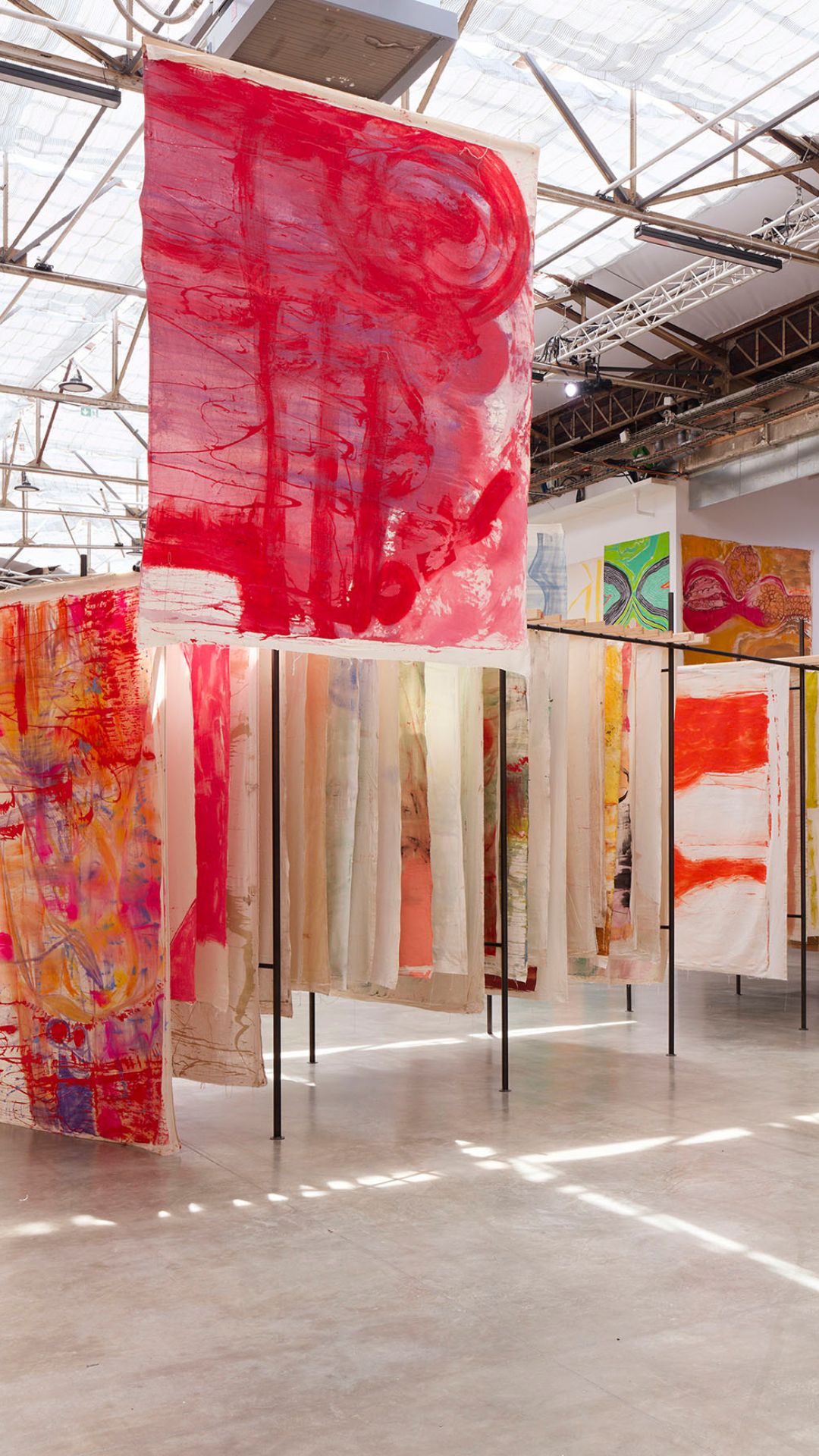 Vivian Suter propose une exposition composée de 400 œuvres réalisées ces dernières années. Réagencées de manière libre et spontanées, elles dialoguent avec l’architecture de Norman Foster.