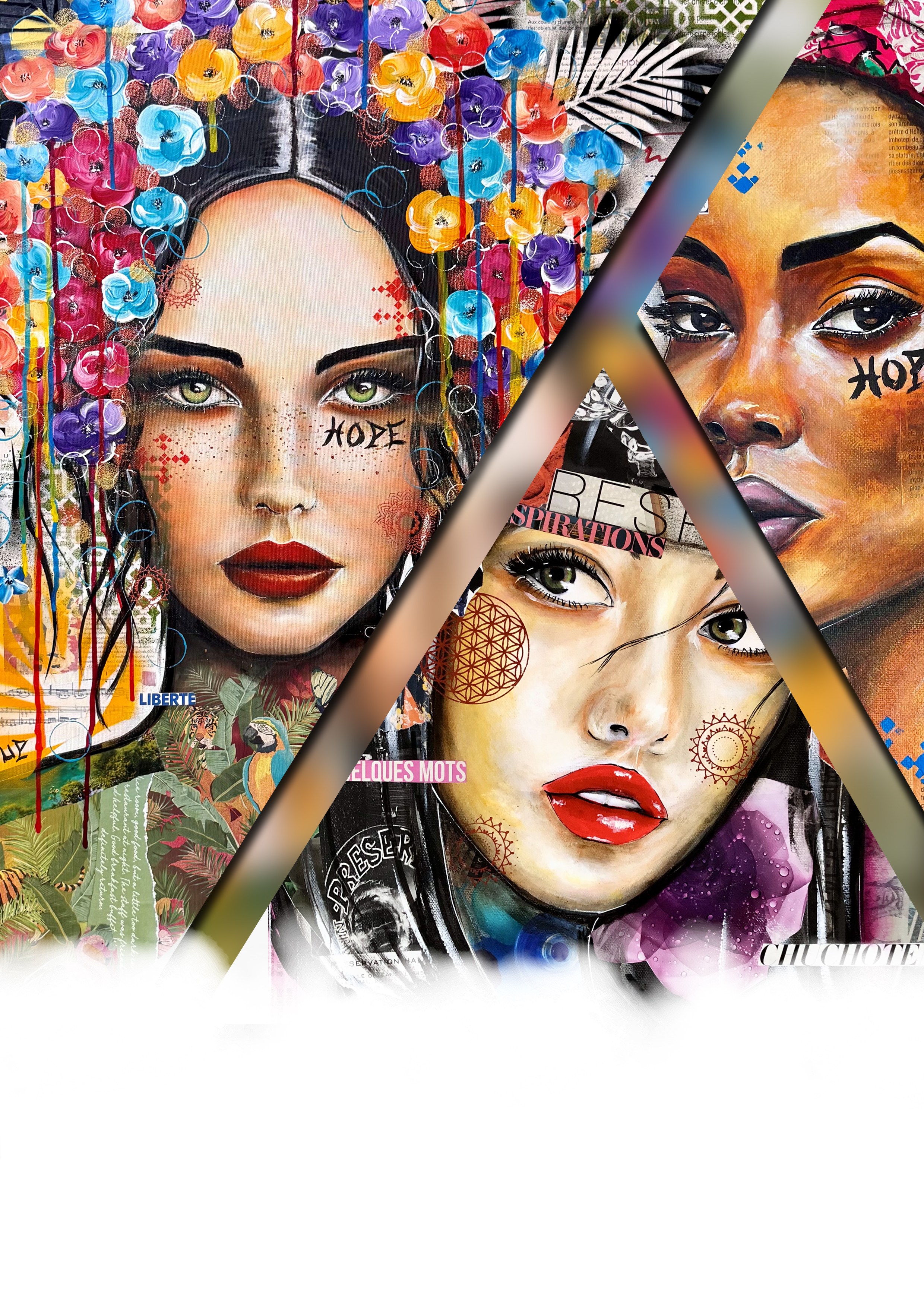 Artiste autodidacte, elle propose un univers singulier mêlant peinture et collage, où se croisent abstraction, figuration et influences pop art. Ses œuvres, portées par des couleurs vives et une grande énergie, explorent notamment des portraits féminins riches en formes et en messages.