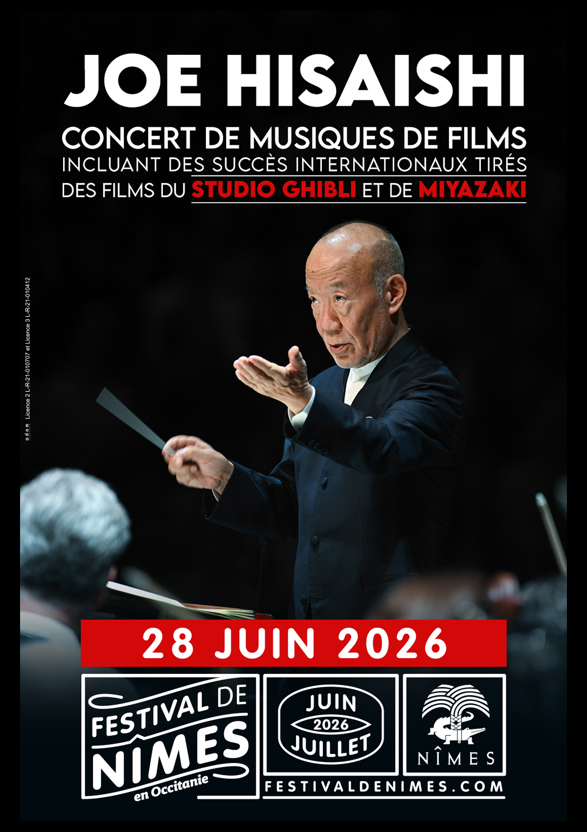 Le célèbre compositeur dirigera certaines de ses plus belles musiques de films, notamment les œuvres primées Hana-Bi (Fireworks) et Kids Return du célèbre réalisateur Takeshi Kitano, ainsi que bien d’autres. De plus, ses musiques très appréciées pour les films du Studio Ghibli, tels que Le Voyage de Chihiro, Ponyo et Le Château ambulant de Hayao Miyazaki, seront accompagnées de scènes des films projetées sur grand écran. Prévente exclusive sur www.festivaldenimes.com du Mardi 9 Décembre 2025 à 12h00 au Jeudi 11 Décembre 2025. Ouverture de la billetterie tous réseaux le Jeudi 11 Décembre 2025 à 10h00.