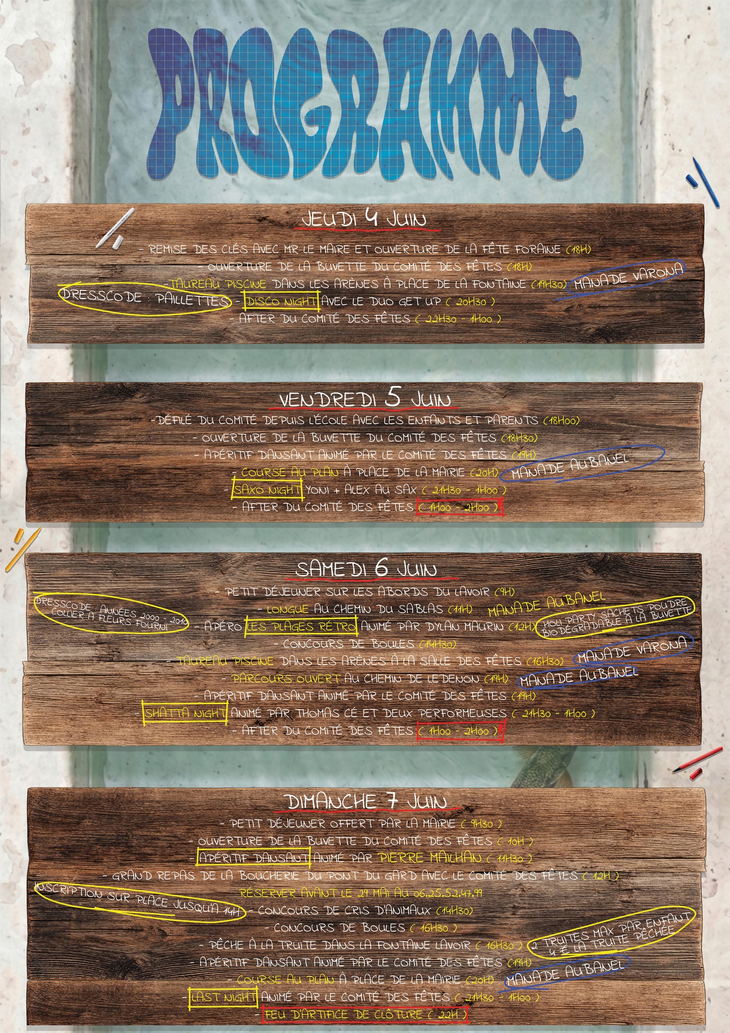 Cette année plein de nouvelles choses verront le jour lors de notre fête ! Feu d’artifice, encierros dans le village, des piscines, de la pêche, un concours de cri d’animaux et d’autres surprises.