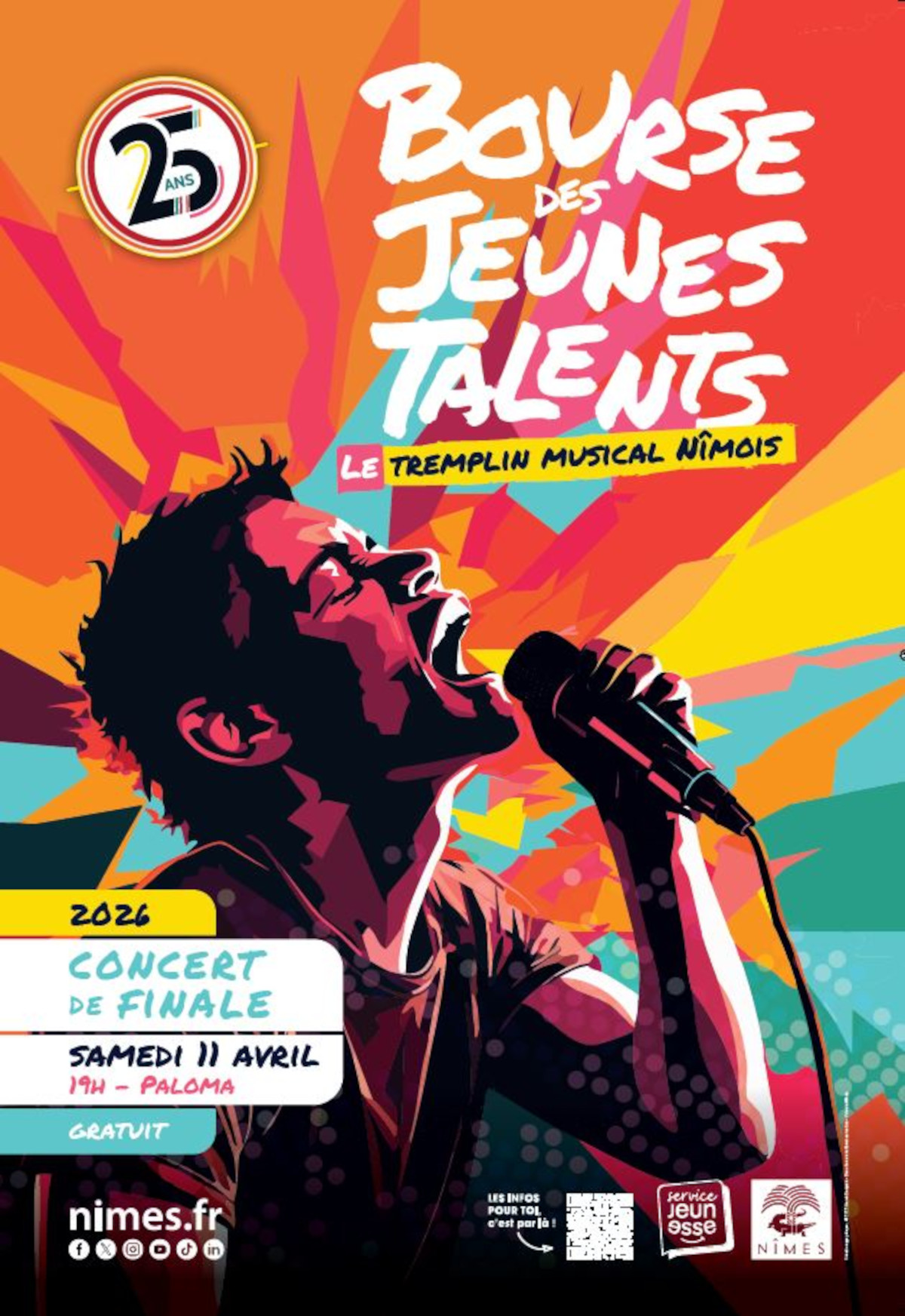 Dispositif phare de soutien à la création musicale, la Bourse des jeunes talents – BJT, accompagne depuis plus de 20 ans les jeunes artistes du territoire. L’édition 2026 organisée par la Ville de Nîmes se déroule à Paloma, scène de musiques actuelles de référence.