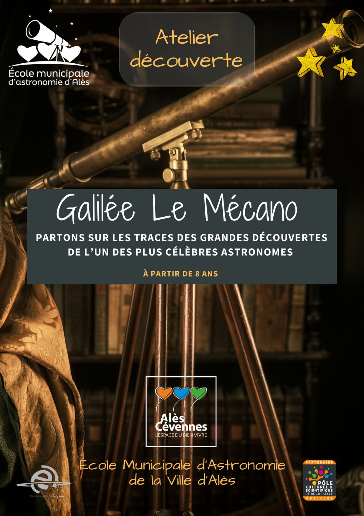 Nous irons sur les traces d’un des plus célèbres astronomes du XVIIème siècle. Galilée est le premier homme à diriger une lunette vers les étoiles, ce qui lui permit de faire de nombreuses découvertes sur la Lune, le Soleil et les planètes. Pour apprendre les principes de l’optique, les enfants devront construire une petite lunette astronomique.