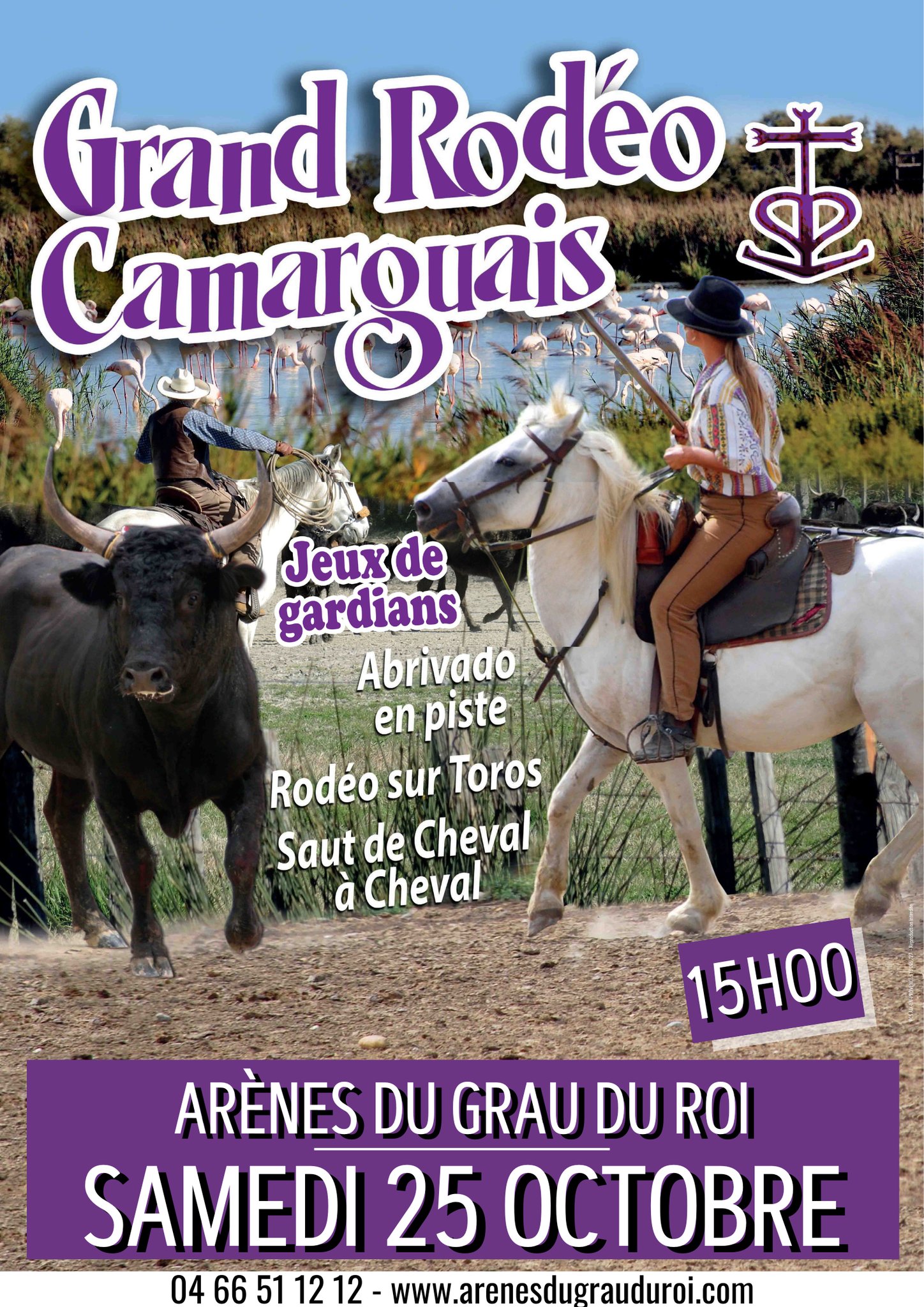 Grand Rodéo Camarguais, Jeux de gardians, abrivado en piste, rodéo sur toros, saut de cheval à cheval