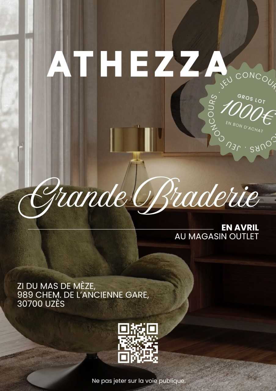 Athezza organise une grande braderie tout le mois d’avril. Une belle occasion de se faire plaisir ou de relooker son intérieur à prix doux. Profitez d’offres exclusives et jeu concours sur place.