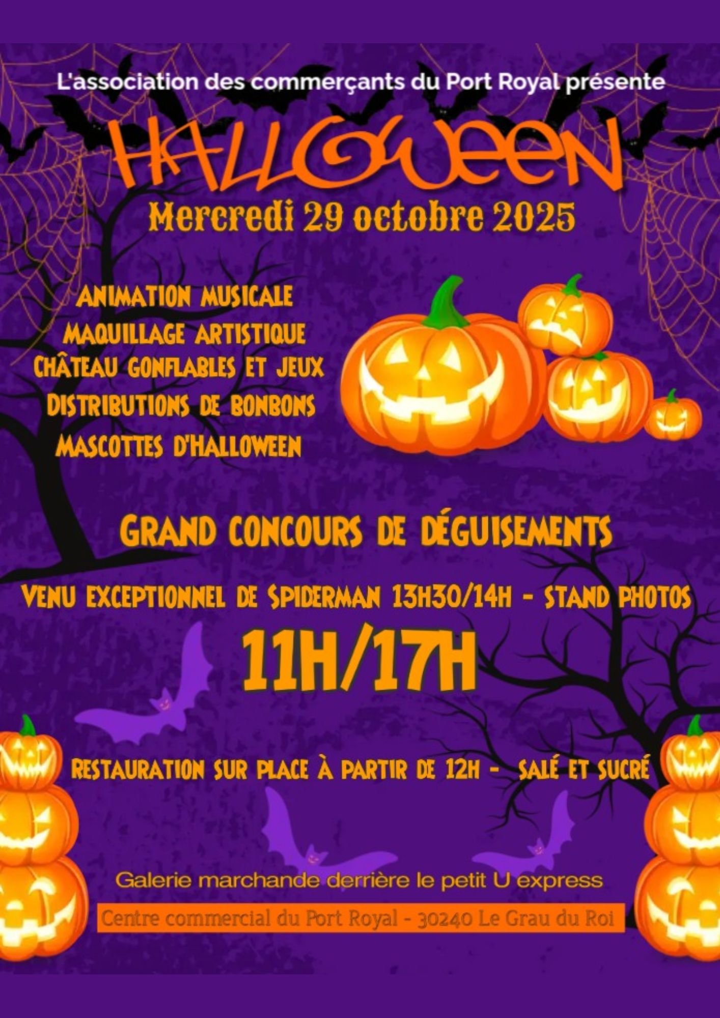 L’association des commerçants de Port Royal vous propose de fêter halloween avec eux !AU programme jeux gonflables, maquillage ou encore mascottes d’halloween !